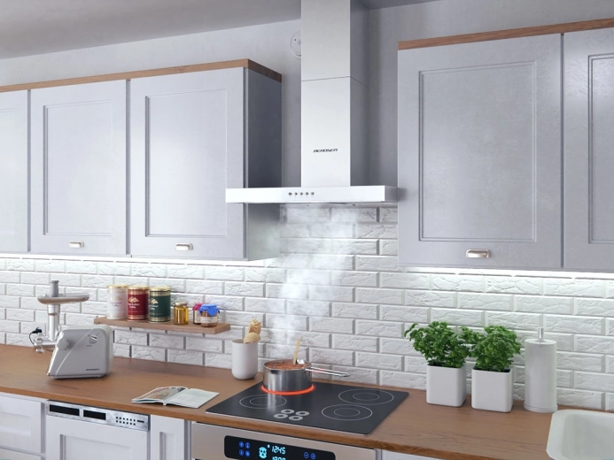 La hotte propose 3 vitesses avec une commande à boutons simple et des filtres à graisse en aluminium à 5 couches qui capturent efficacement les graisses. Elle peut fonctionner en évacuation vers le conduit ou en recyclage avec le filtre à charbon Berdsen TYPE‑A (en option, à acheter séparément). Grâce à ses dimensions compactes de 60 × 45 cm et une hauteur de 45–75 cm, elle s’adapte à différentes configurations de cuisine.