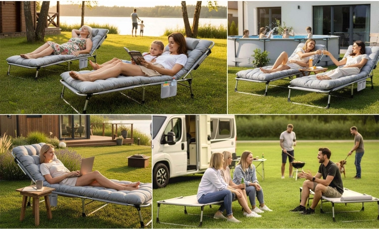 Le transat pliant et lit de camp ChillWell Dream est conçu pour un confort maximal en relaxation comme en sommeil. Sa conception ergonomique offre un maintien ferme à tout le corps, tandis que la réglage du dossier à 5 positions et la section des jambes rabattable permettent d’adopter exactement la posture qui vous convient – du couchage à plat à la position semi-allongée pour la lecture.