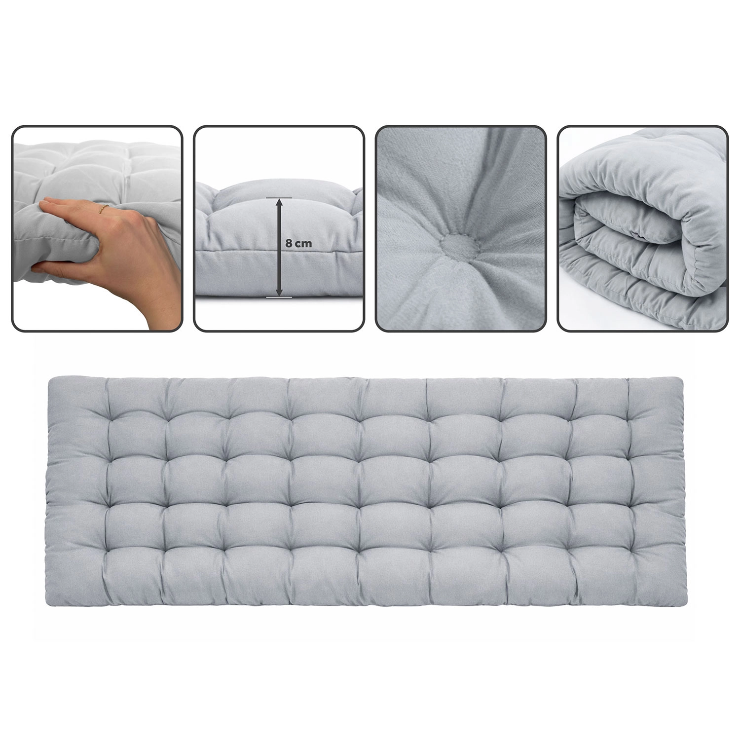 Matelas doux, densément rembourré et piqué qui garde sa forme et offre une agréable souplesse même lors de longues périodes allongées. Un coussin amovible est inclus.