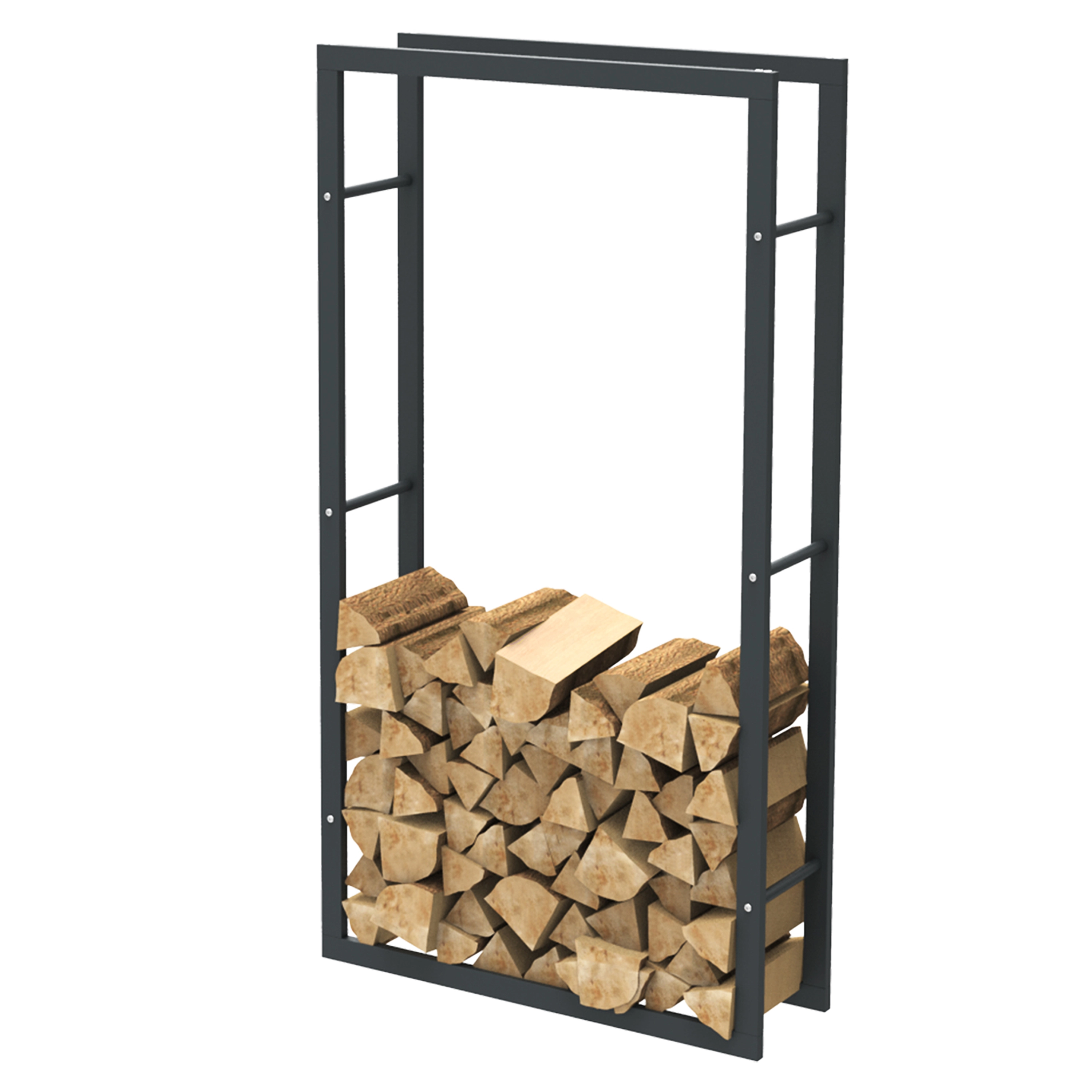 Porte-bûches pratique et élégant de 60 × 25 × 100 cm offrant un rangement soigné et sécurisé des bûches directement près de la cheminée. Grâce à sa structure métallique robuste avec finition de surface, il est durable et stable, tandis que son design élancé économise de la place et apporte une touche moderne à tout intérieur.