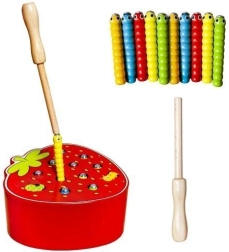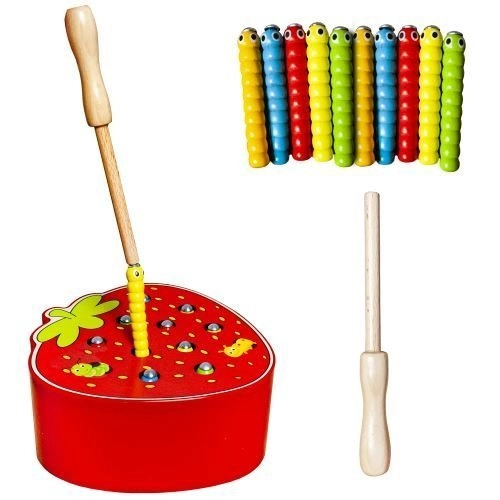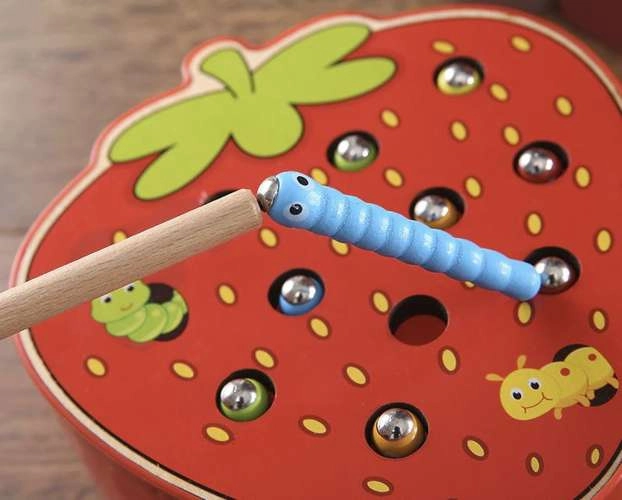 Un jeu en bois amusant en forme de délicieuse fraise qui développe la motricité fine et la concentration. Les enfants utilisent une baguette magnétique pour retirer et insérer les petits vers dans les ouvertures. Le jeu est fabriqué avec des matériaux sûrs et présente des couleurs vives qui motivent les enfants à jouer et à apprendre. Un excellent choix pour le développement de la coordination œil-main, de la créativité et de la patience.