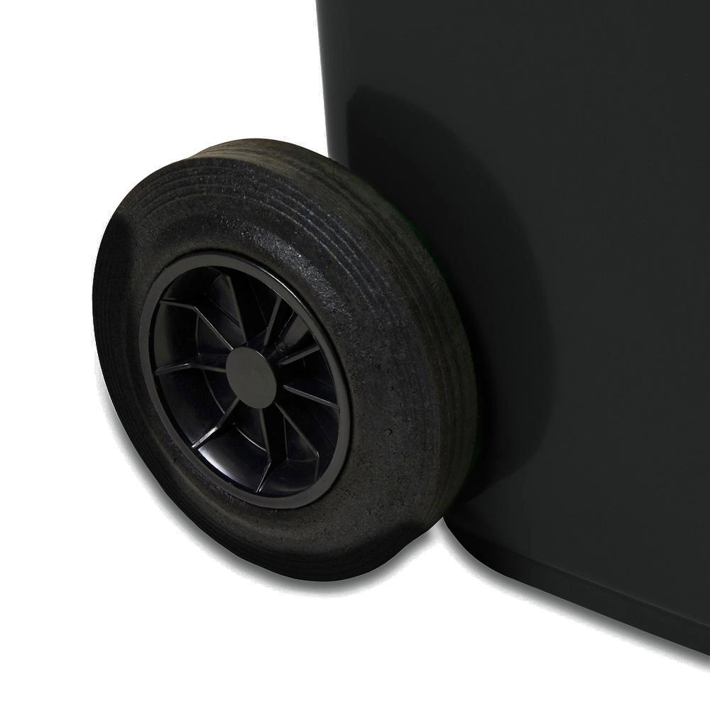 Cette poubelle en plastique noire de 120 litres est un excellent choix pour les foyers, les entreprises et les sites industriels. Grâce à son faible poids, à ses poignées latérales ergonomiques et à sa paire de roues robustes, le conteneur se manie facilement même à pleine charge. Le couvercle solide aide à réduire les odeurs et empêche l’accès des nuisibles.