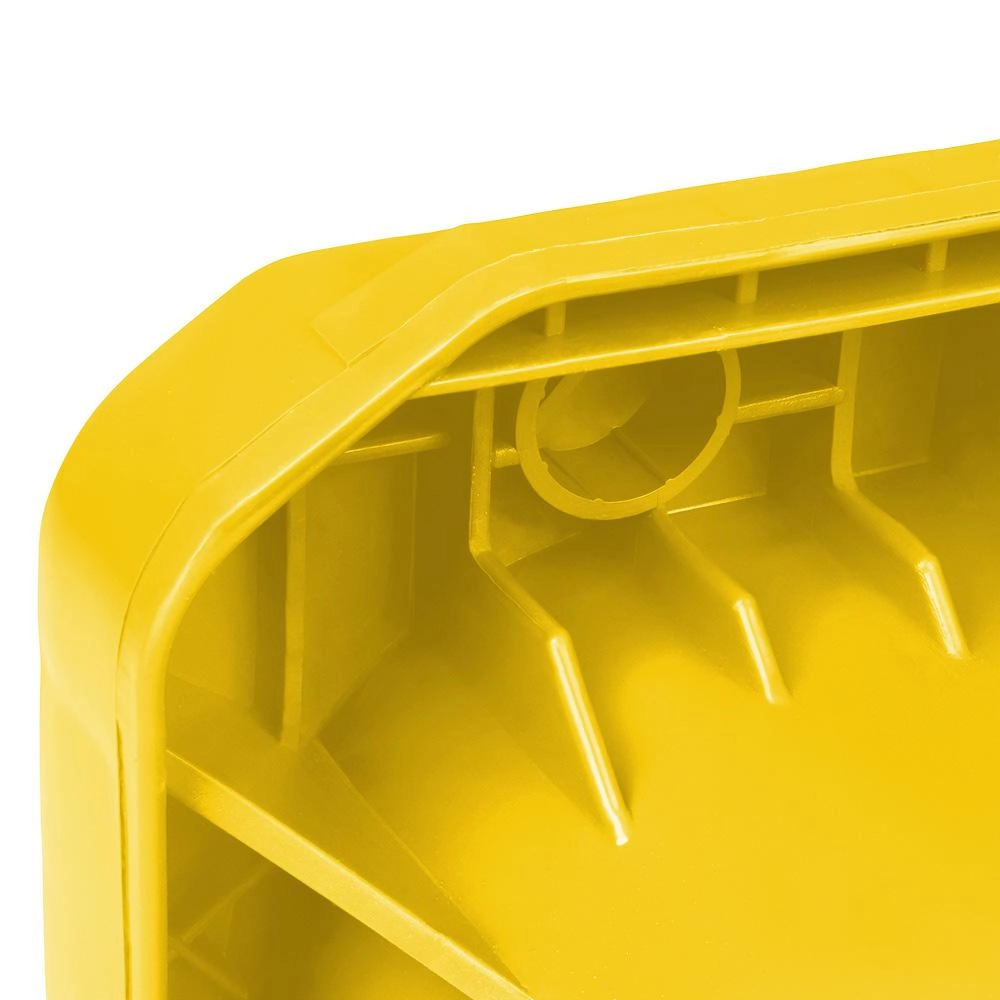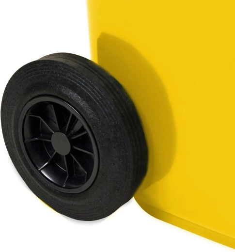 La construction en plastique solide résiste aux intempéries. La couleur jaune facilite le tri et la visibilité du conteneur.