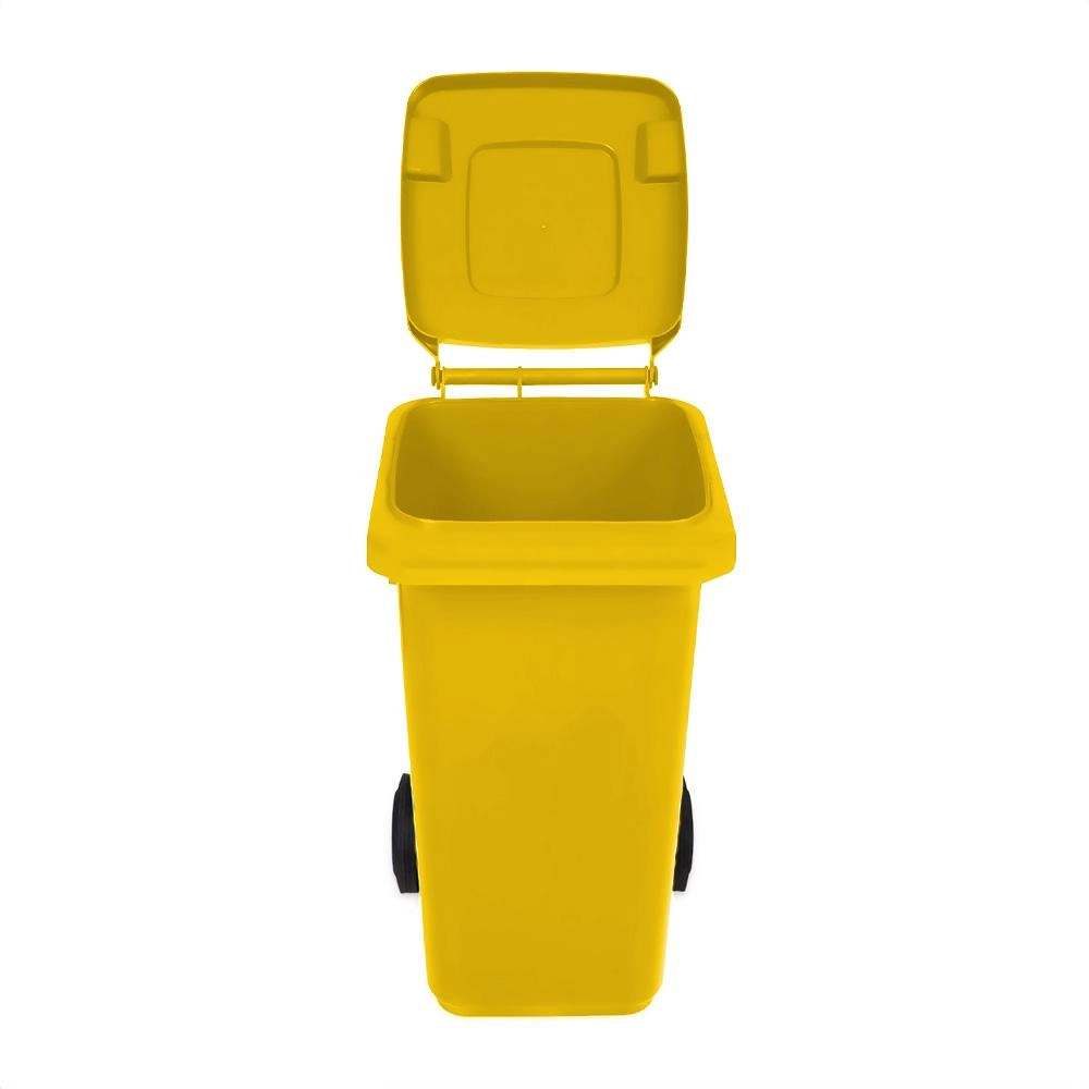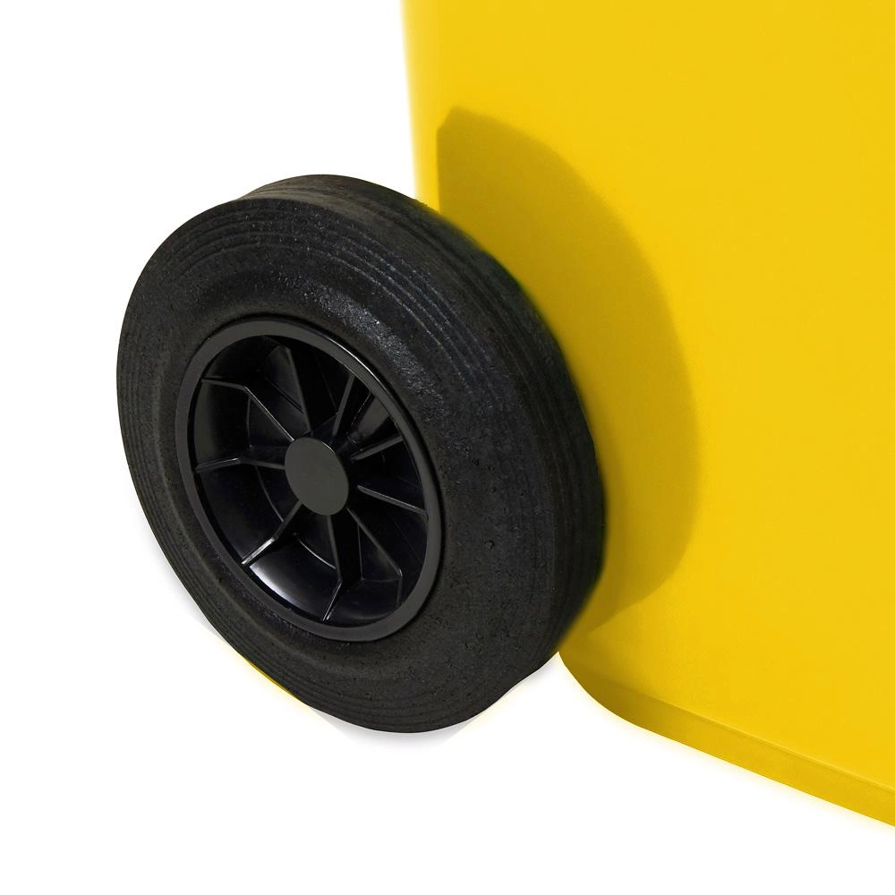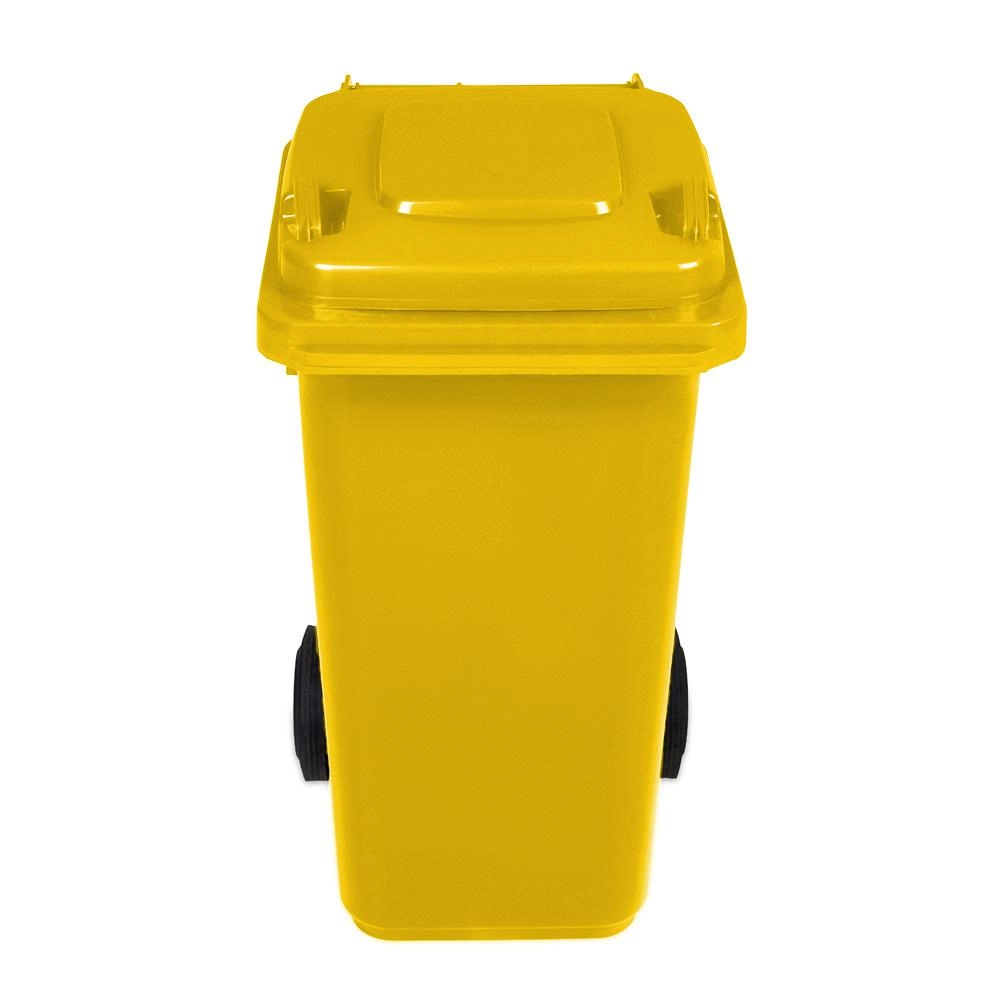 Cette poubelle jaune de 120 l est fabriquée en plastique résistant pour un usage quotidien. Le couvercle refermable retient les odeurs et les saletés, tandis que les poignées robustes et les deux roulettes assurent un transport confortable et sûr. Grâce à sa couleur voyante, elle convient au tri des déchets et à une identification claire.