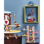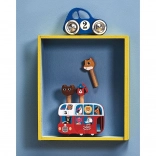 La voiturette bleue Vilac est fabriquée en bois laqué, ce qui garantit sa durabilité tout en offrant une allure élégante. Elle possède des roues métalliques gainées de caoutchouc assurant une conduite fluide et silencieuse. Grâce à sa solution spéciale d’essieu, la voiturette peut tourner à gauche et à droite, ce qui rend le jeu plus dynamique.
