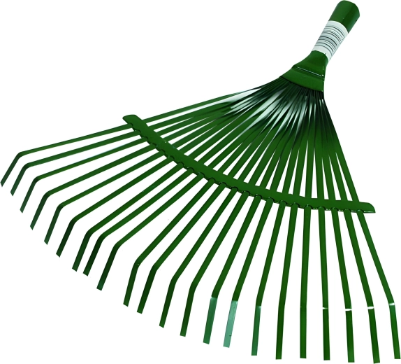 Râteau suédois à lames souples, léger et résistant, doté de fils flexibles densément espacés pour un ratissage facile des pelouses, une collecte délicate des feuilles et un entretien respectueux du jardin.