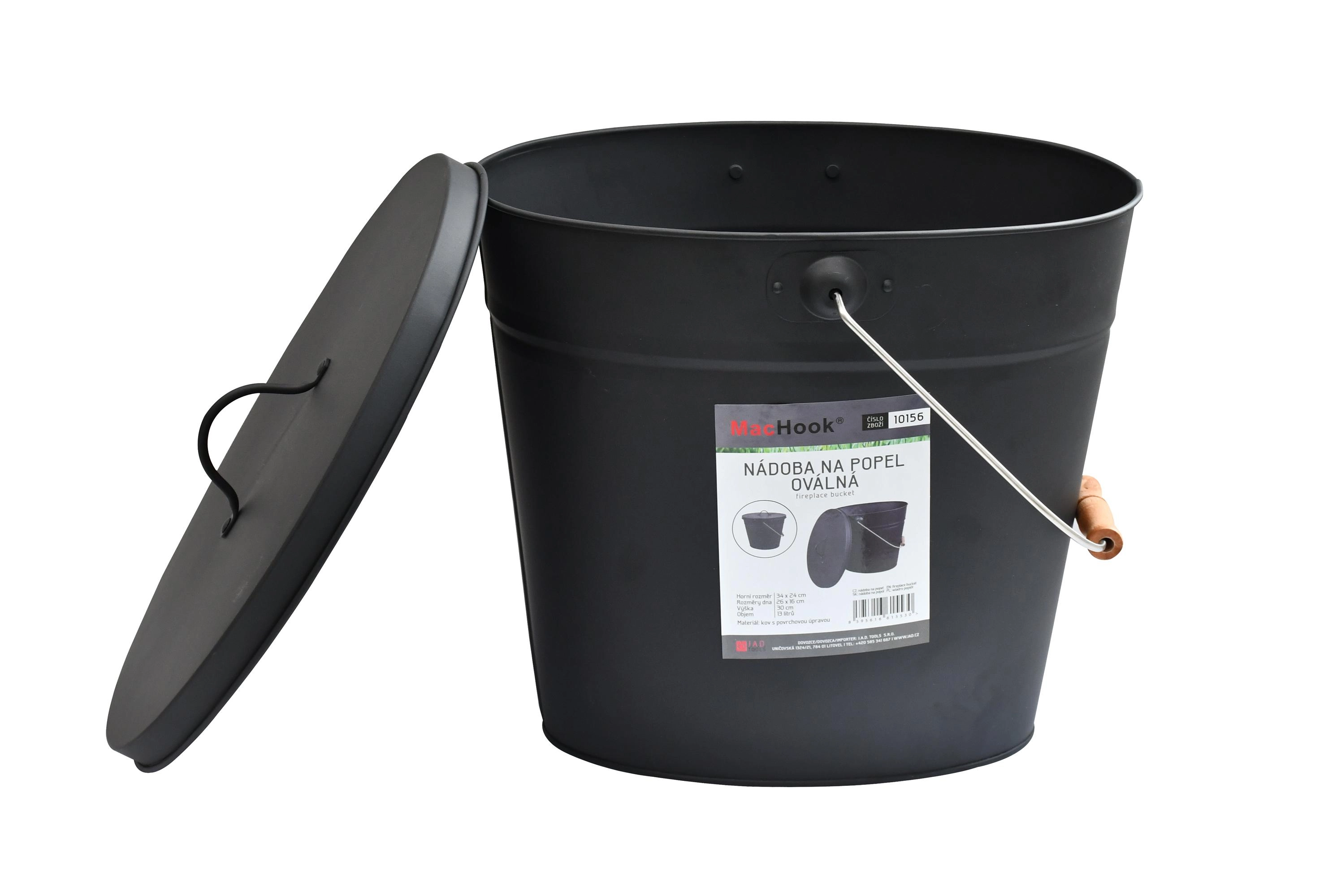 Récipient à cendres en métal pratique d’un volume de 13 litres, à forme ovale et dimensions stables, pour un stockage sûr des cendres de cheminées et de poêles. Il offre un fond stable, un couvercle bien ajusté et une épaisseur de matériau de 0,32 mm pour une longue durée de vie.