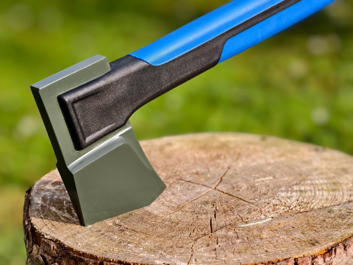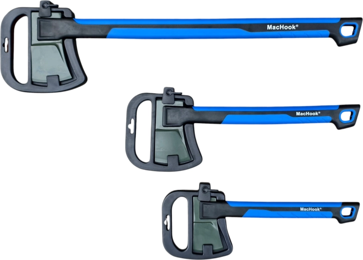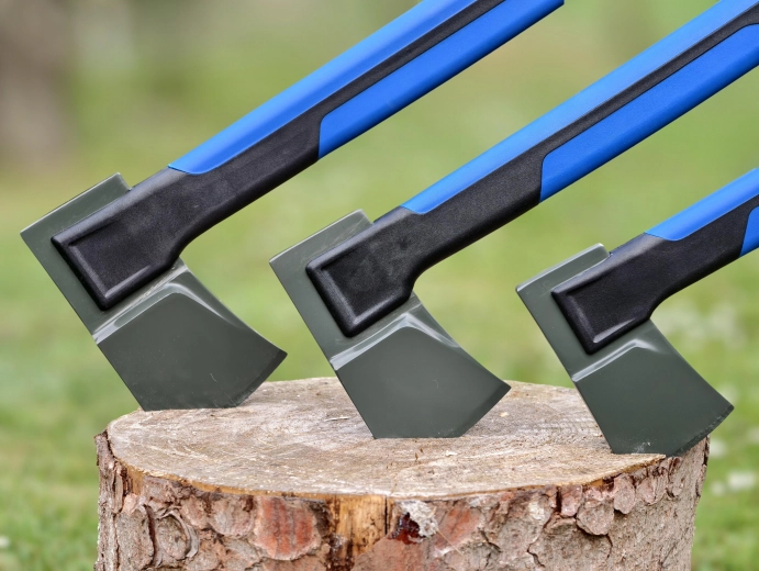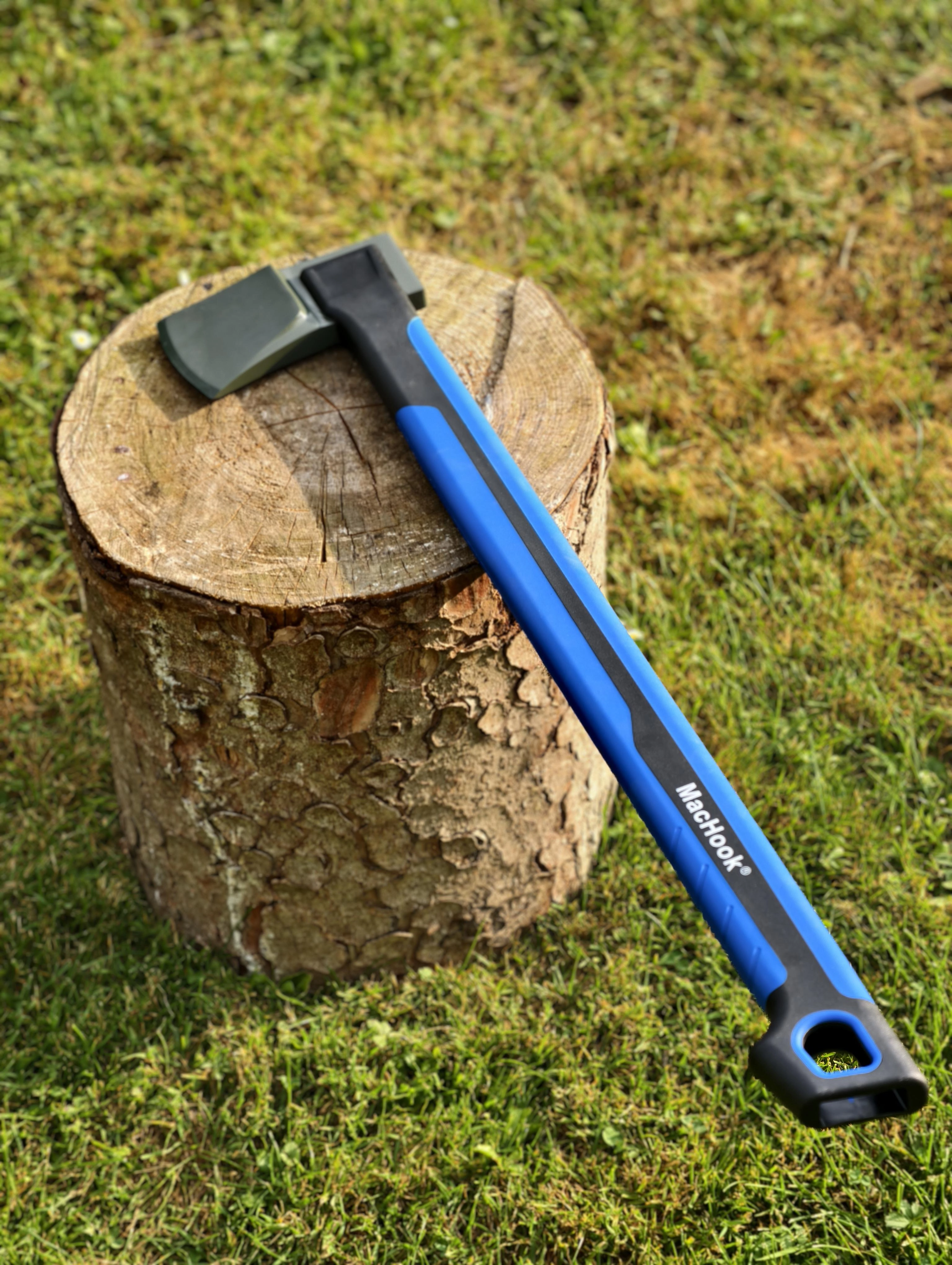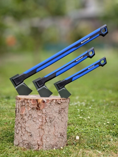 Hache universelle de 1710 g avec manche en fibre de verre résistant pour une réduction des vibrations et une manipulation confortable. Idéale pour couper et équarrir le bois au jardin comme en forêt, avec une poignée ergonomique antidérapante et un centre de gravité équilibré pour une puissance de frappe efficace.