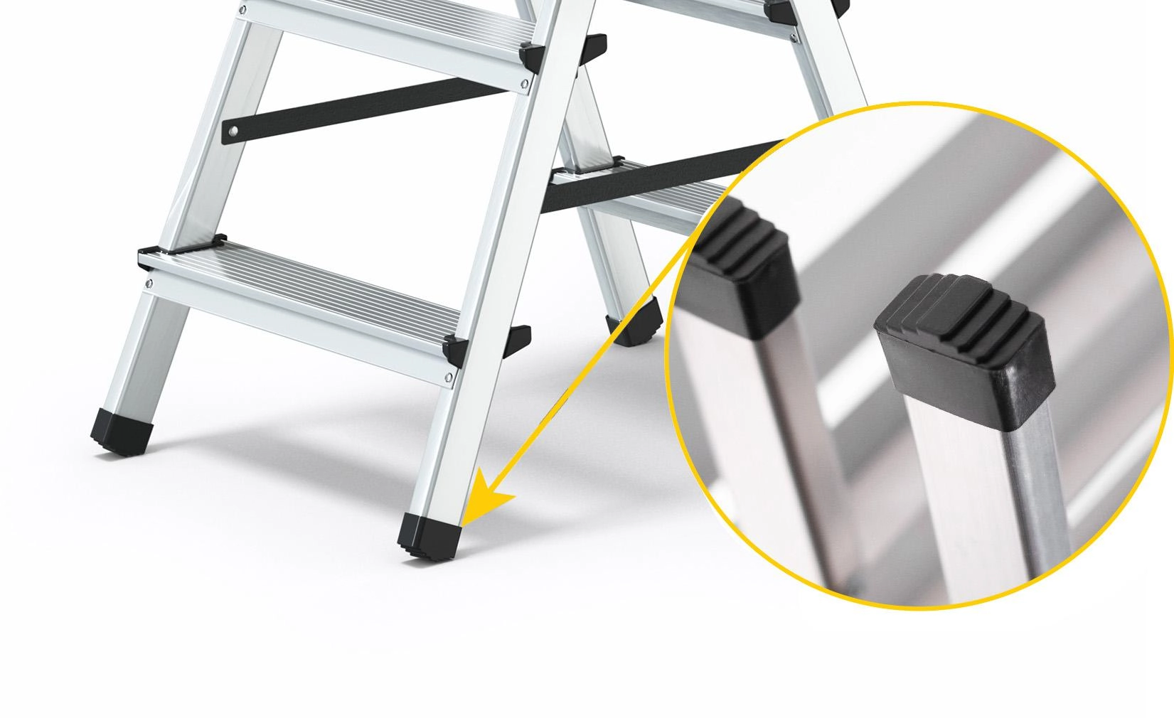 Les marches en aluminium striées et la plateforme de travail offrent une démarche sûre même lors de travaux prolongés.