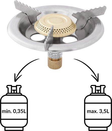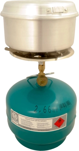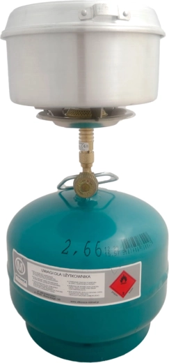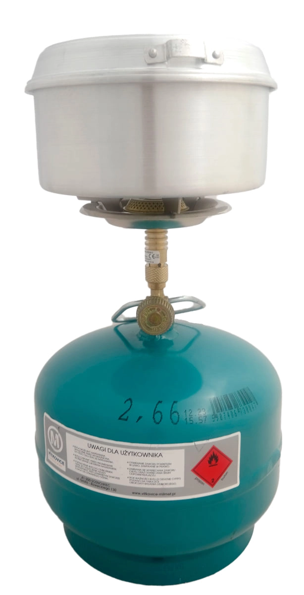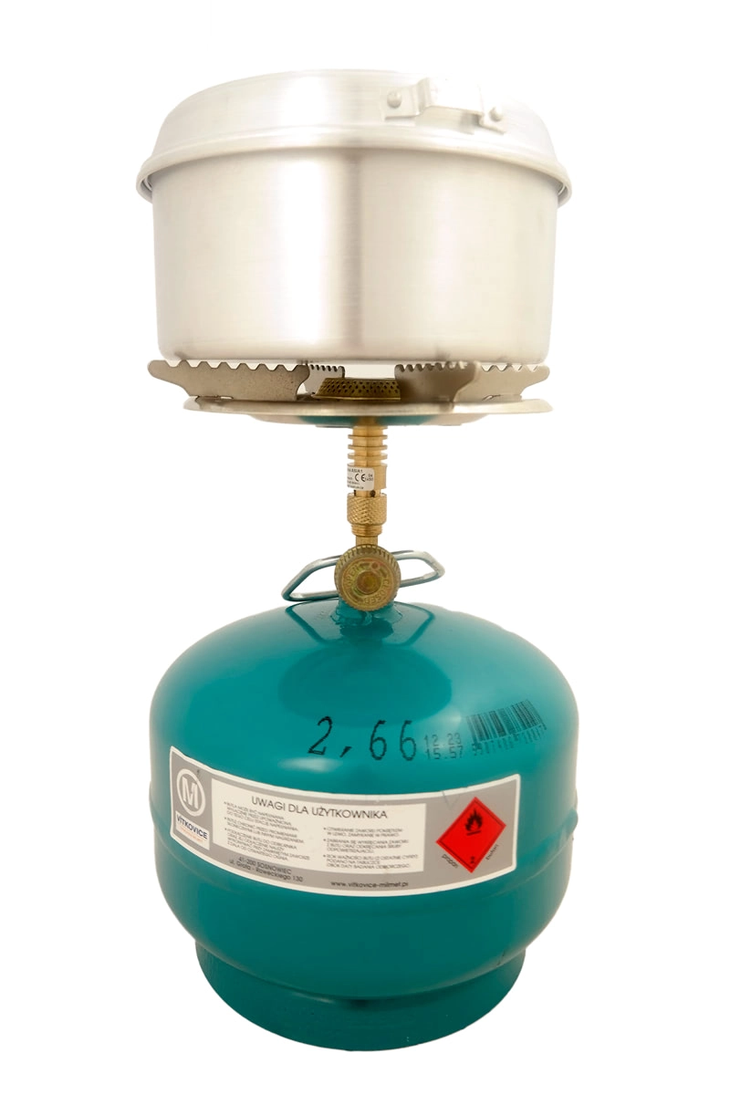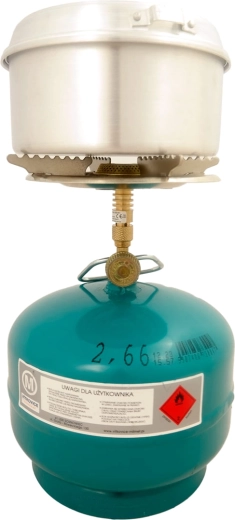 Le réchaud se visse facilement directement sur une bouteille standard de propane‑butane avec valve G3/8. Pas de complications avec des tuyaux – il suffit de connecter, tourner la valve et cuisiner.
