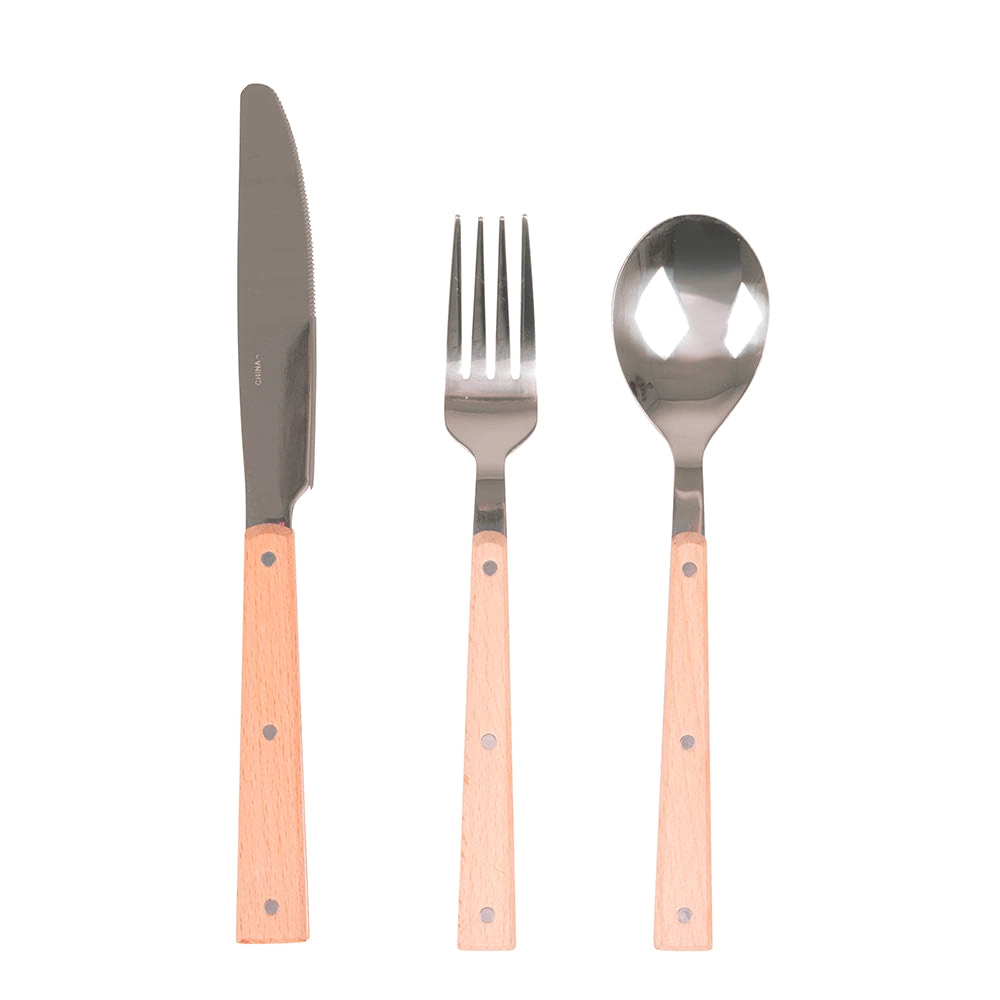 Le set comprend 2 couteaux, 2 fourchettes et 2 cuillères en acier inoxydable épais avec manches en bois pour une prise en main sûre et agréable. Des dimensions compactes une fois plié facilitent le rangement dans un sac à dos ou un sac.