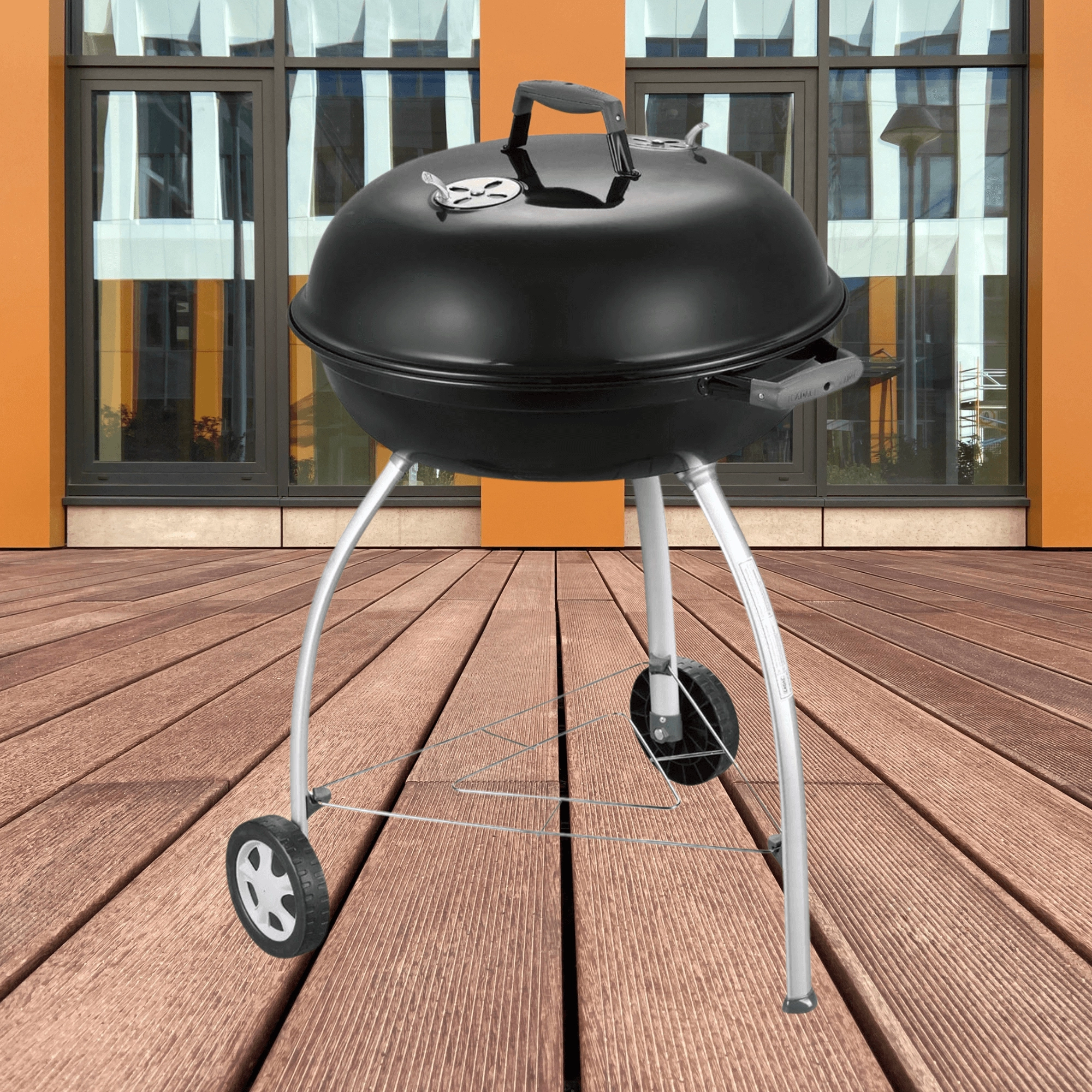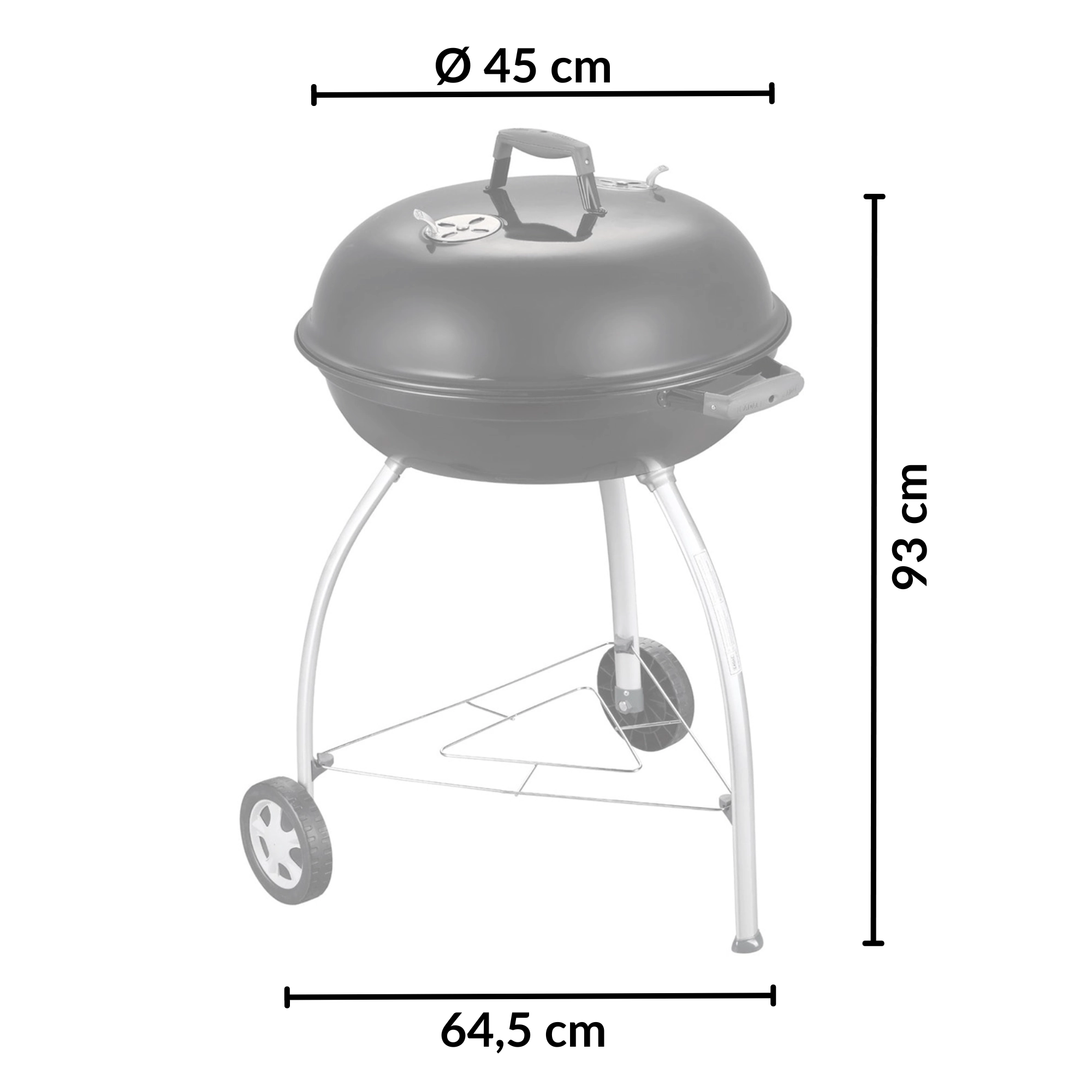 Deux roues pour un déplacement confortable dans le jardin et trois pieds solides avec étagère de renfort pour une stabilité sûre pendant la cuisson.