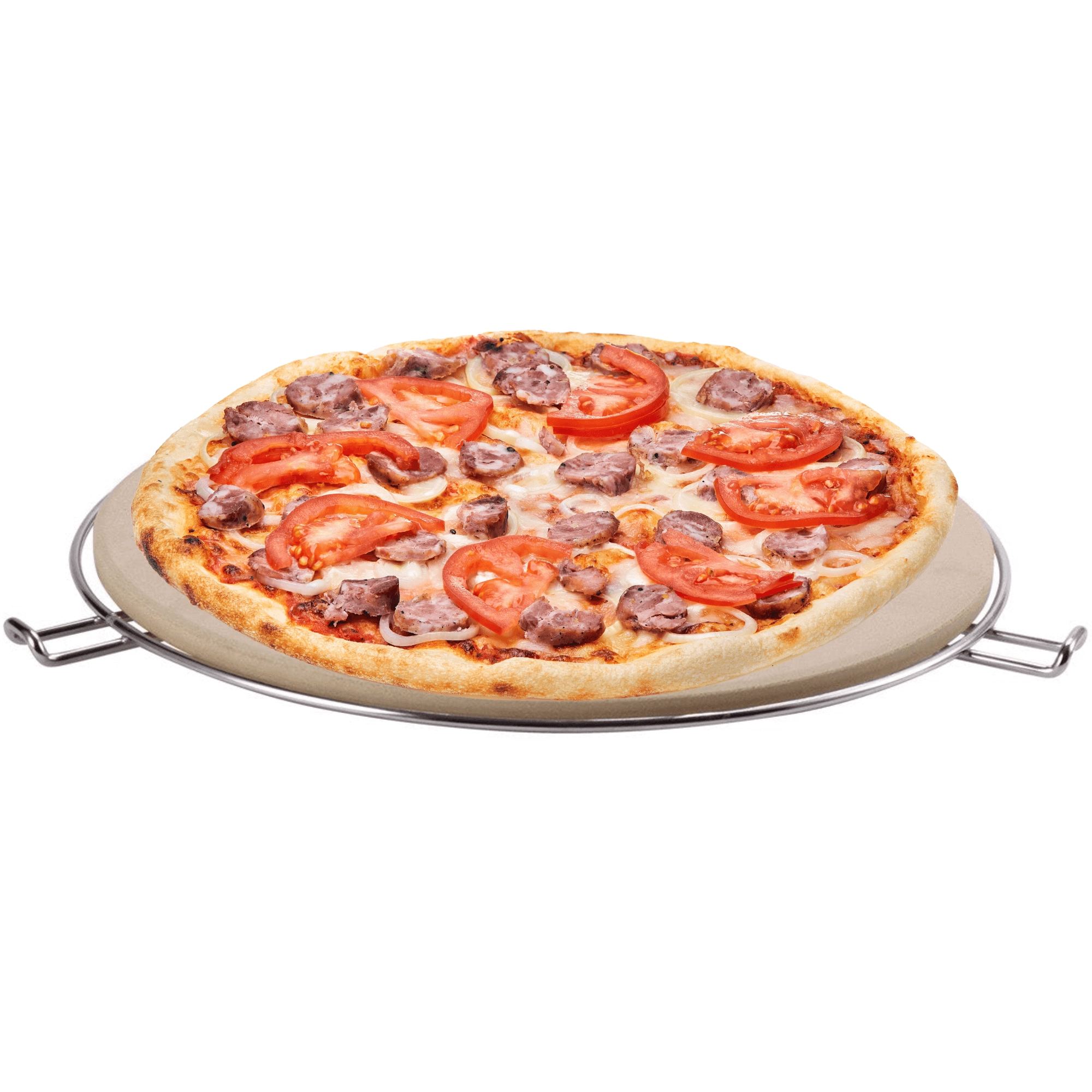 Offrez-vous une pâte croustillante comme à la pizzeria grâce à la pierre à pizza ronde CADAC de 36 cm de diamètre avec poignées pratiques. La pierre en céramique/chamotte accumule et répartit la chaleur de manière homogène pour une base uniformément cuite et des bords croustillants. Compatible avec le four, les grills à gaz et au charbon, résistante jusqu’à 300 °C et fournie avec un support en fil métallique chromé avec poignées pour une manipulation en toute sécurité.