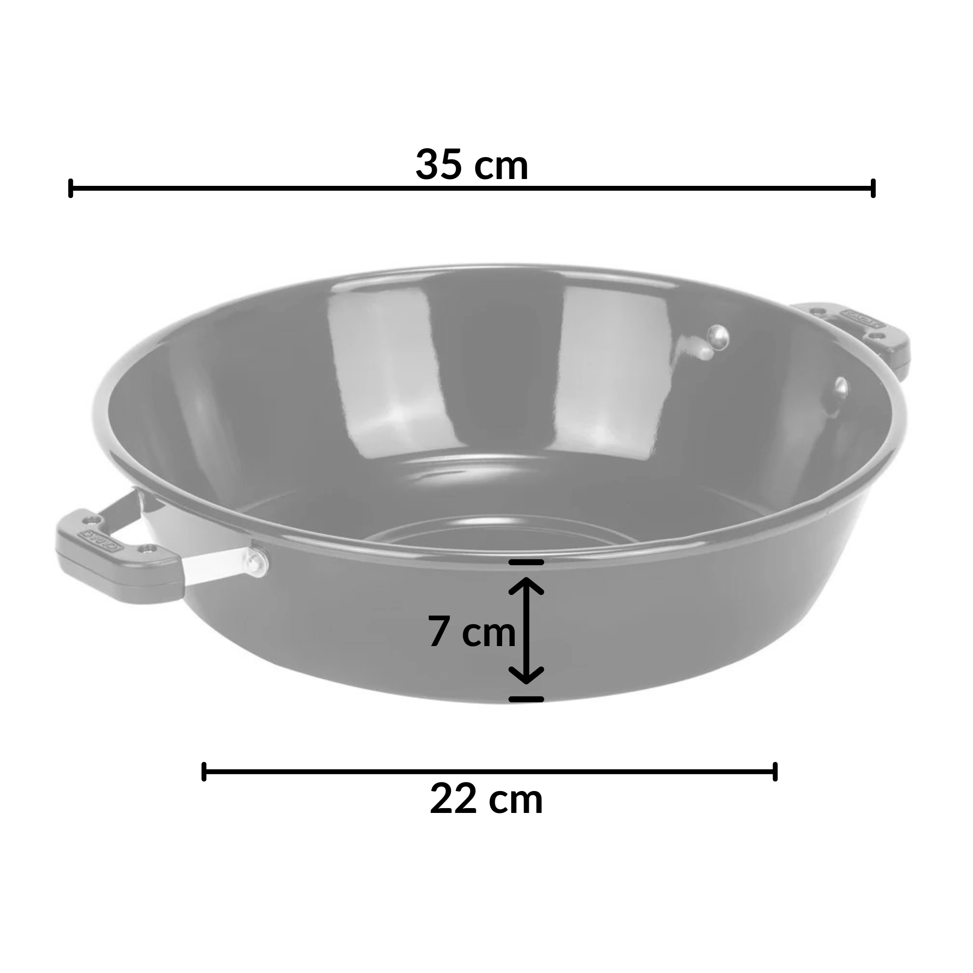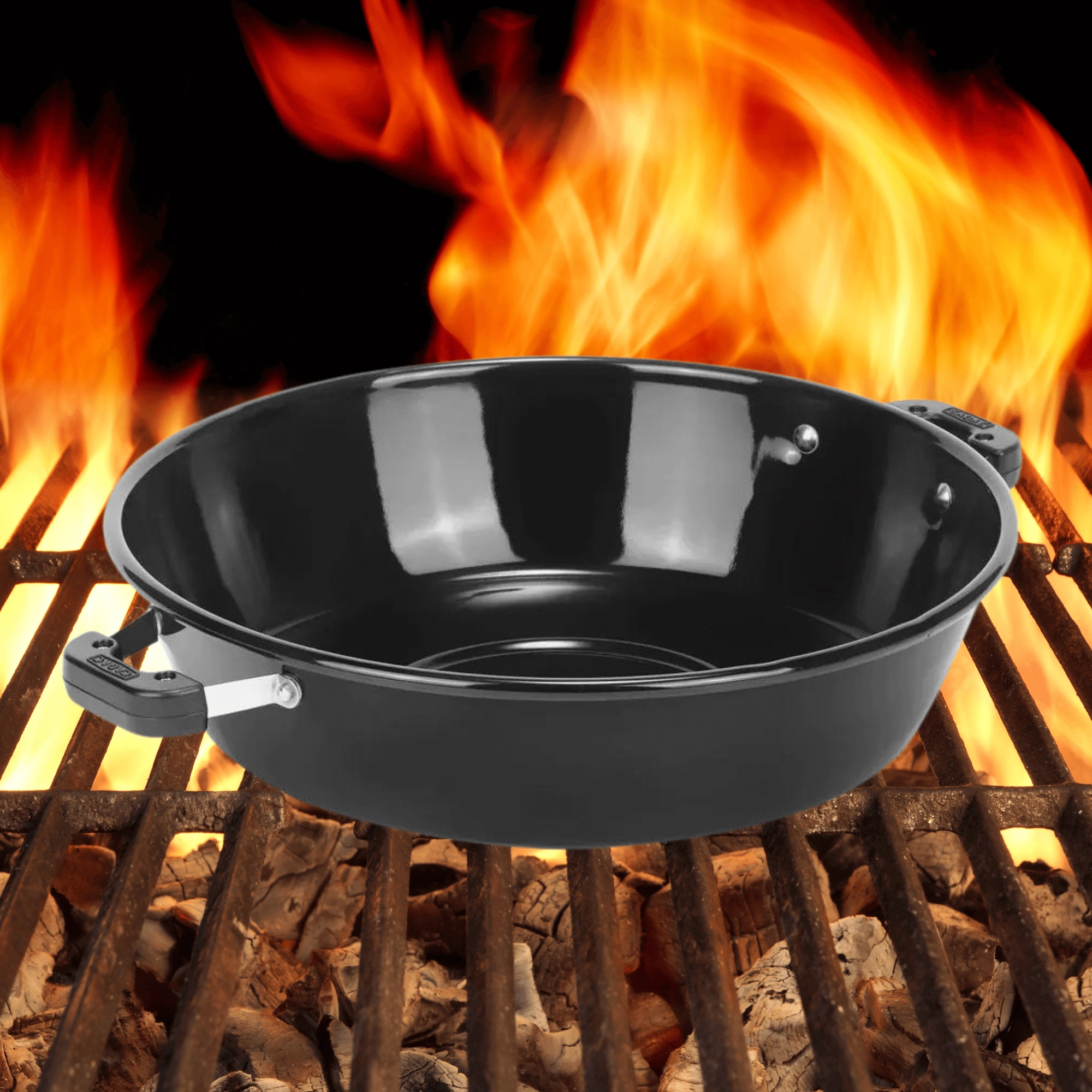 Ce complément pratique pour votre barbecue ou réchaud CADAC combine les fonctions de couvercle et de faitout en un seul accessoire. Avec un diamètre de 35 cm et une surface de cuisson de 22 cm, il offre suffisamment d’espace pour les accompagnements, sauces et plats principaux. Grâce au revêtement émaillé, la chaleur est répartie uniformément et les aliments n’attachent pas.