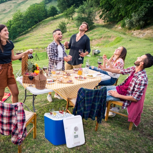 Le module de refroidissement intégré dans le couvercle et le connecteur allume-cigare 12 V gardent vos boissons et aliments au frais pendant tout le trajet. Idéal pour la voiture, le camping-car et le bateau.
