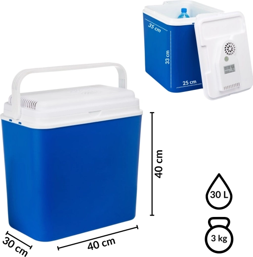 La glacière électrique KAMAI ATLANTIC 30 l est la compagne idéale pour les week-ends, les vacances et les longs trajets. Le branchement sur la prise 12 V du véhicule assure un refroidissement actif, tandis qu’une isolation efficace maintient une température basse pendant longtemps. Son élégant design bleu avec couvercle blanc a fière allure et sa construction robuste se nettoie facilement.