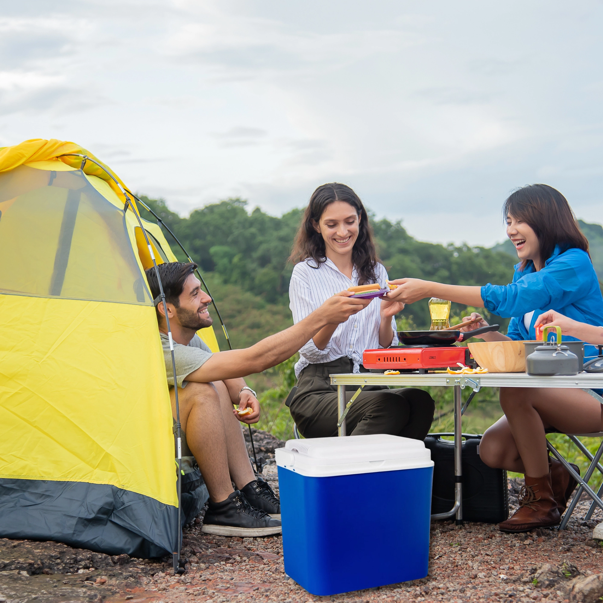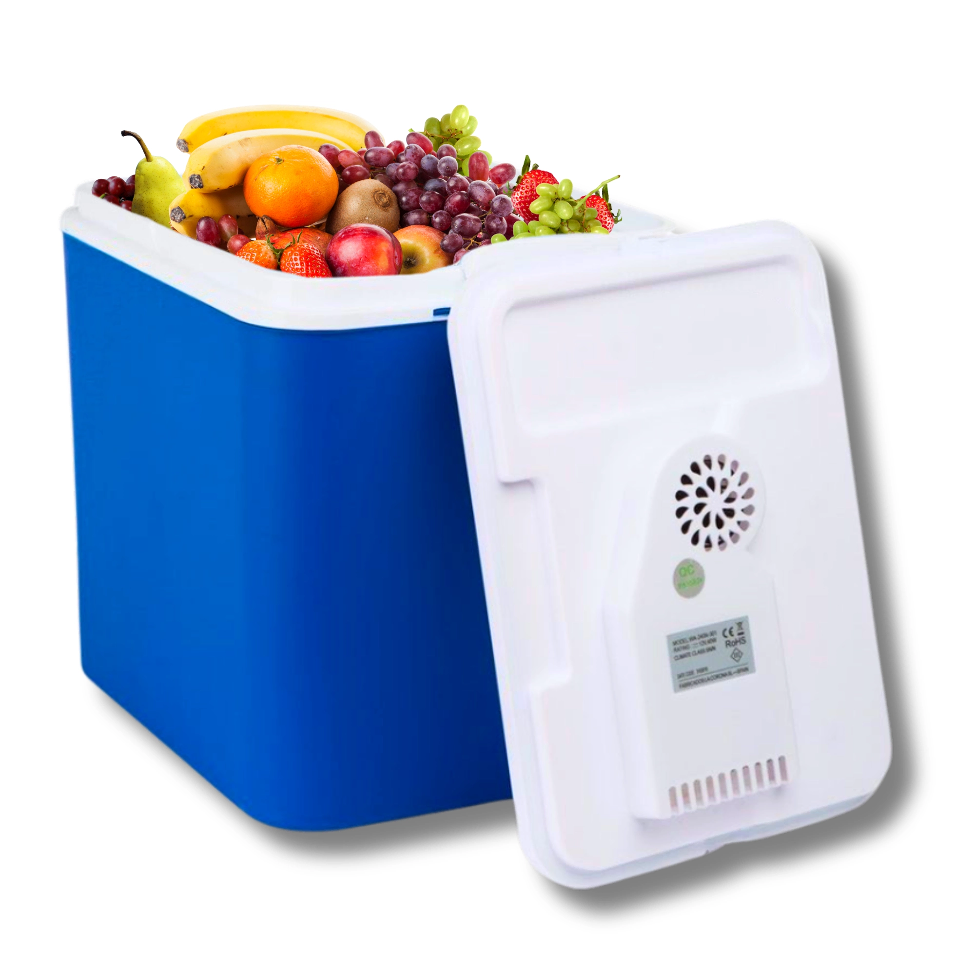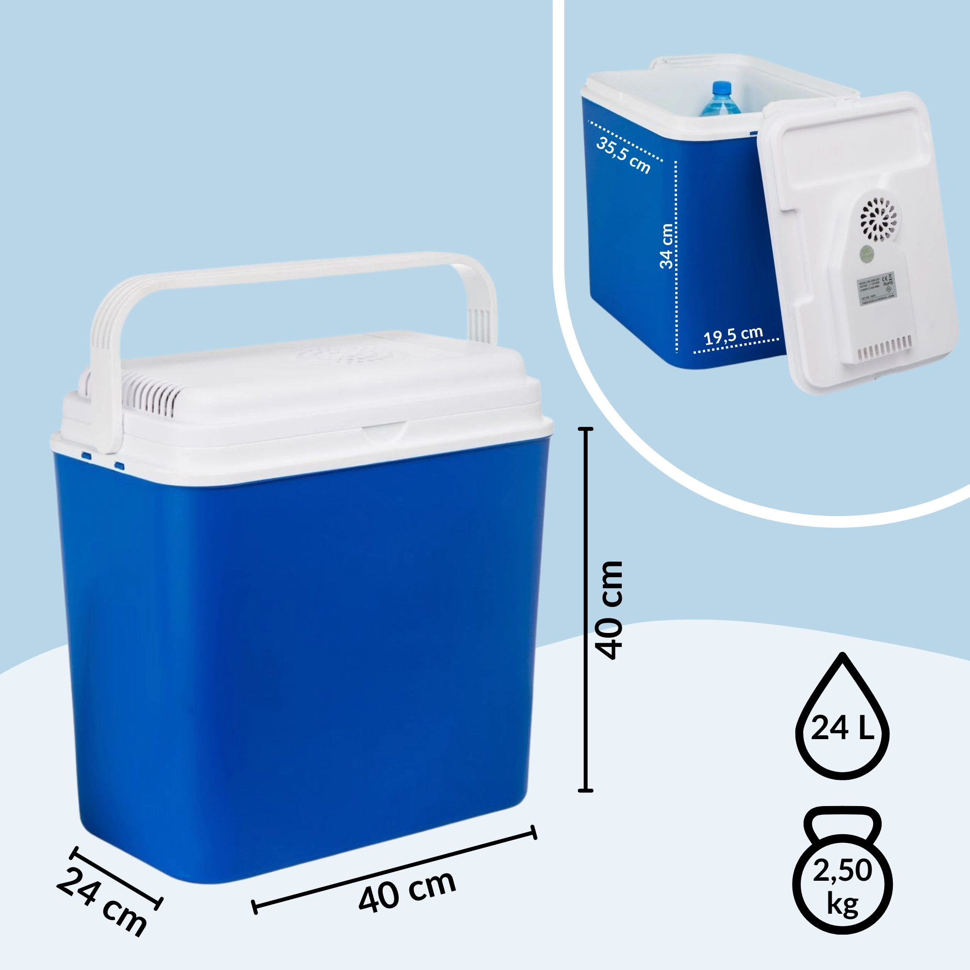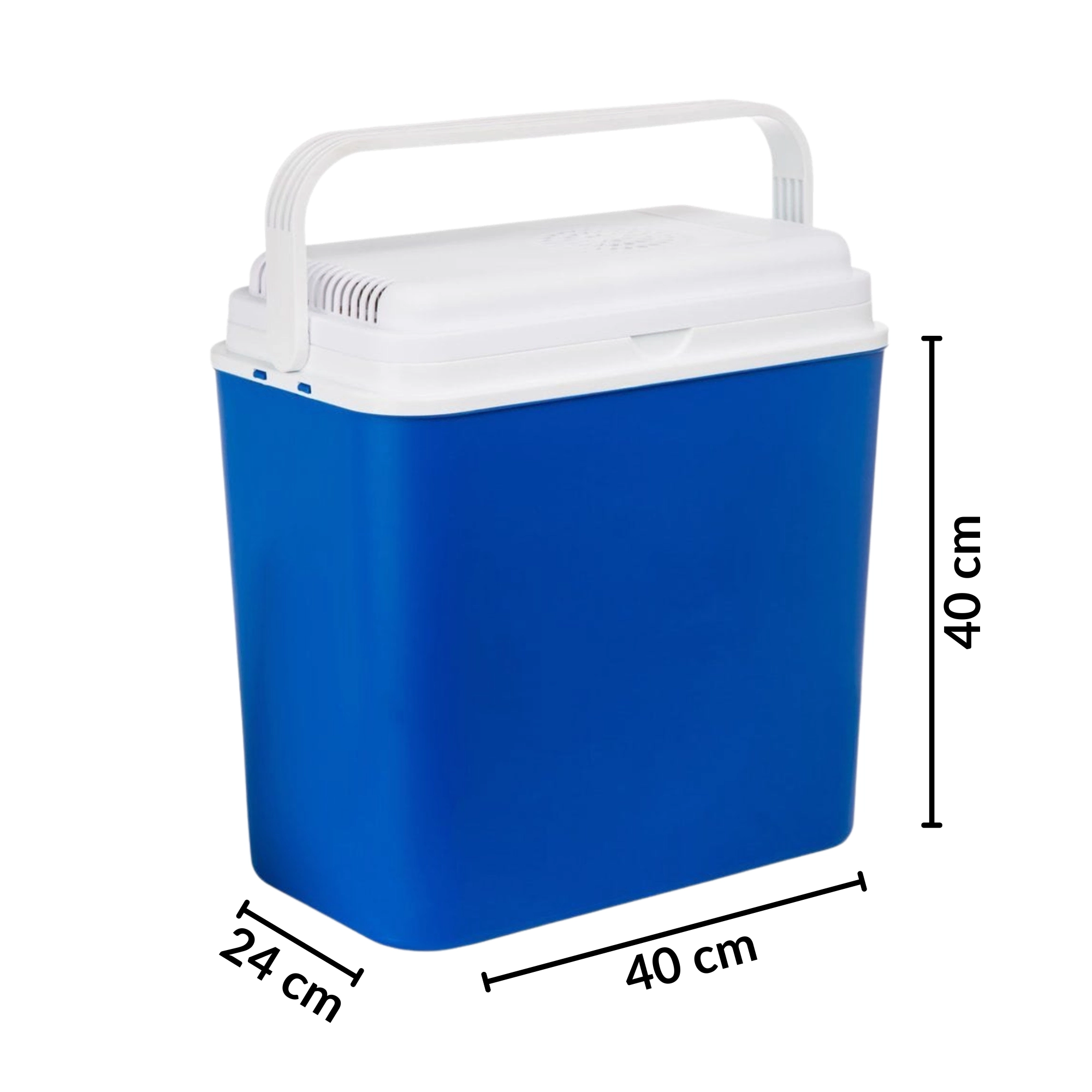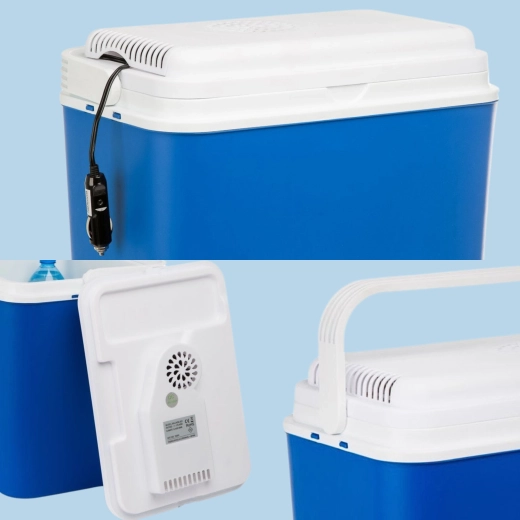 Glacière électrique compacte de 24 l alimentée par la prise allume-cigare 12 V, idéale pour les voyages, le camping et les pique-niques. Grâce au module thermoélectrique Peltier, elle maintient de manière fiable une basse température sans produits chimiques nocifs et sa isolation de qualité garde le contenu au frais même après débranchement. Une poignée pliante pratique, une construction robuste et un entretien facile en font une excellente compagne pour toutes vos aventures.