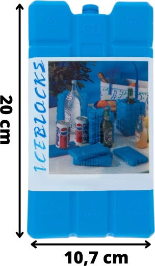 Ses dimensions de 20 × 10,7 × 4,1 cm permettent de le placer aisément dans la plupart des sacs isothermes et glacières sans occuper inutilement de place.