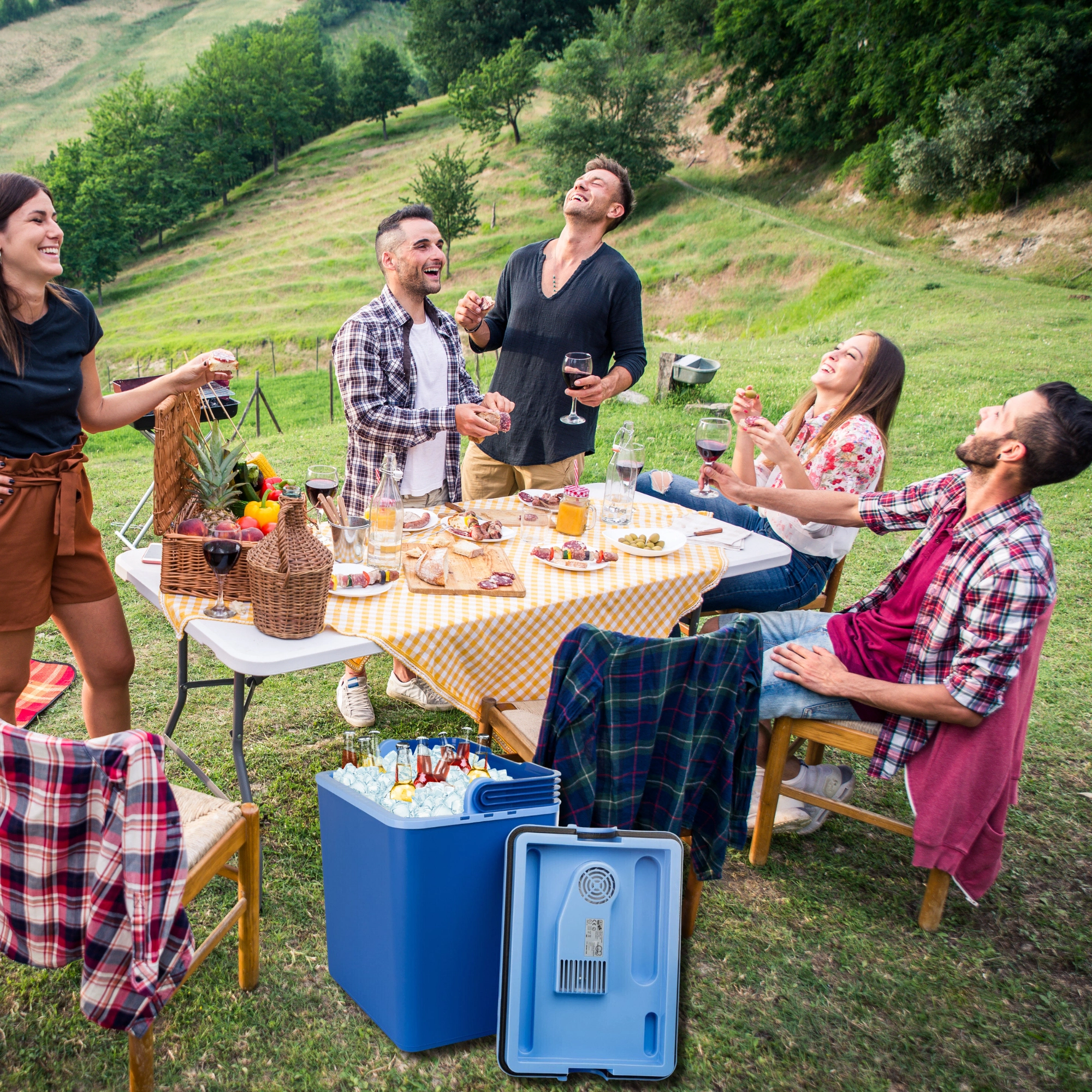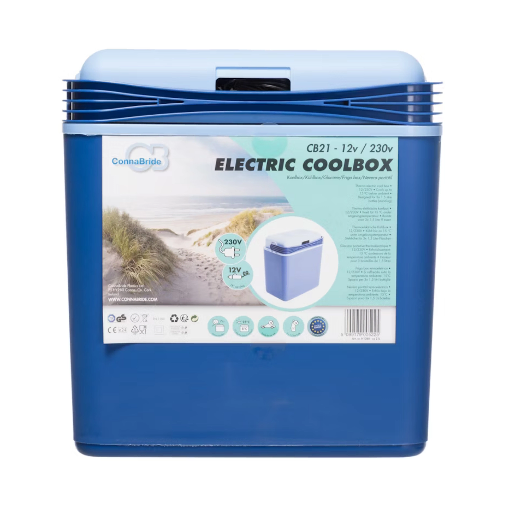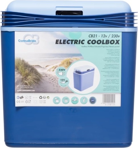 Idéale pour la voiture, les excursions, les pique-niques et le camping. Une fois reliée à un convertisseur/transformateur 12/230 V, vous pouvez également l’utiliser au chalet ou au jardin. La poignée de sécurité avec blocage empêche l’ouverture involontaire du couvercle pendant la conduite et le rangement de câble intégré garde tout bien organisé.