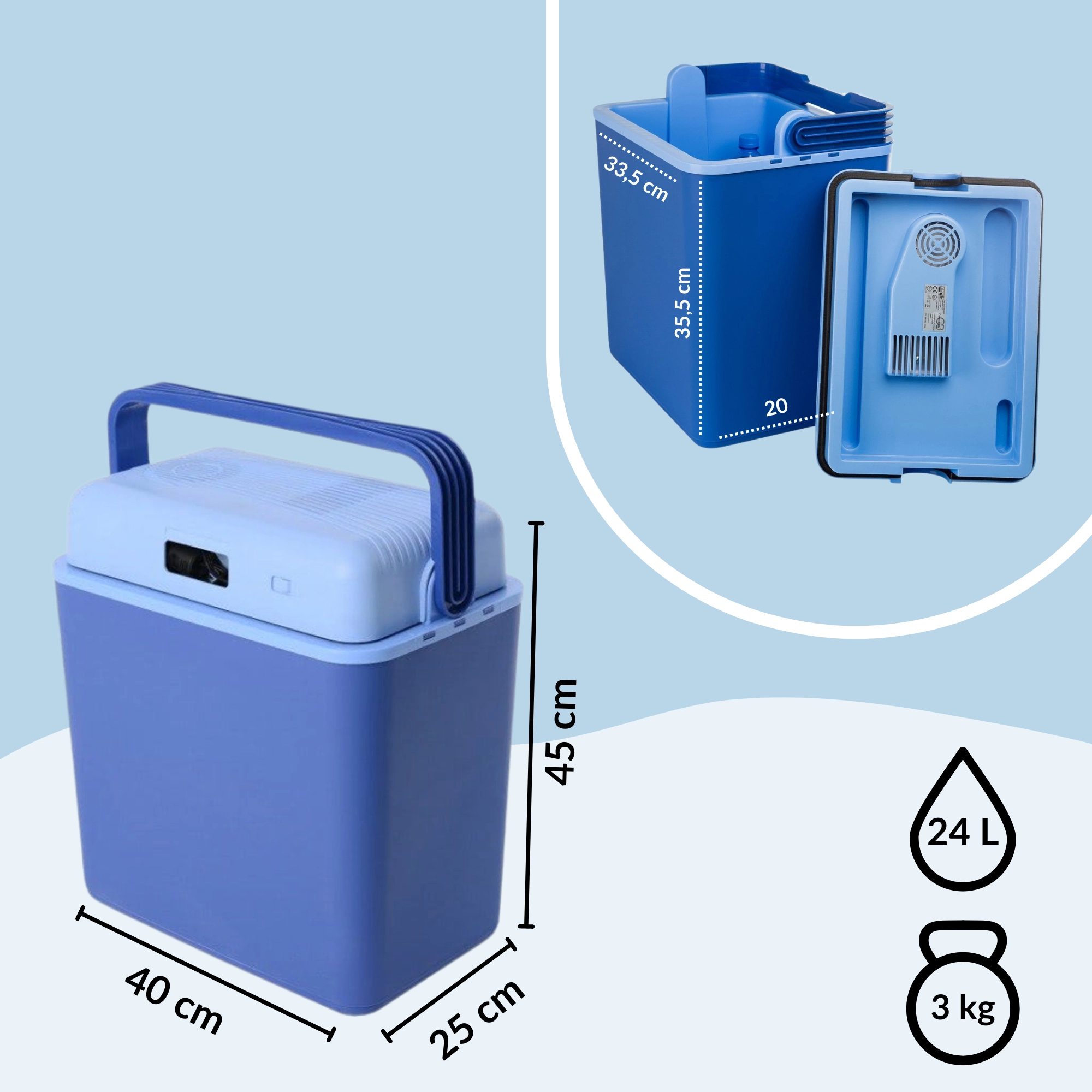 • Capacité pratique de 24 l – de la place pour des bouteilles hautes et suffisamment de rafraîchissements.