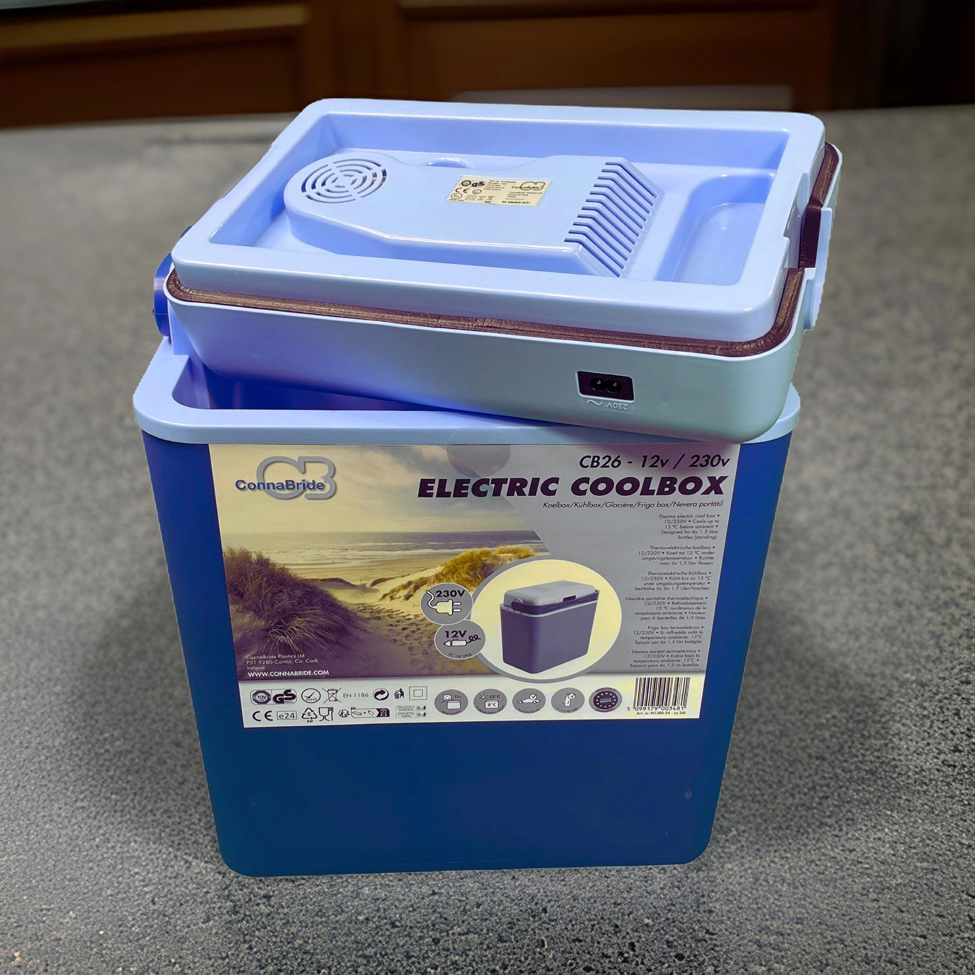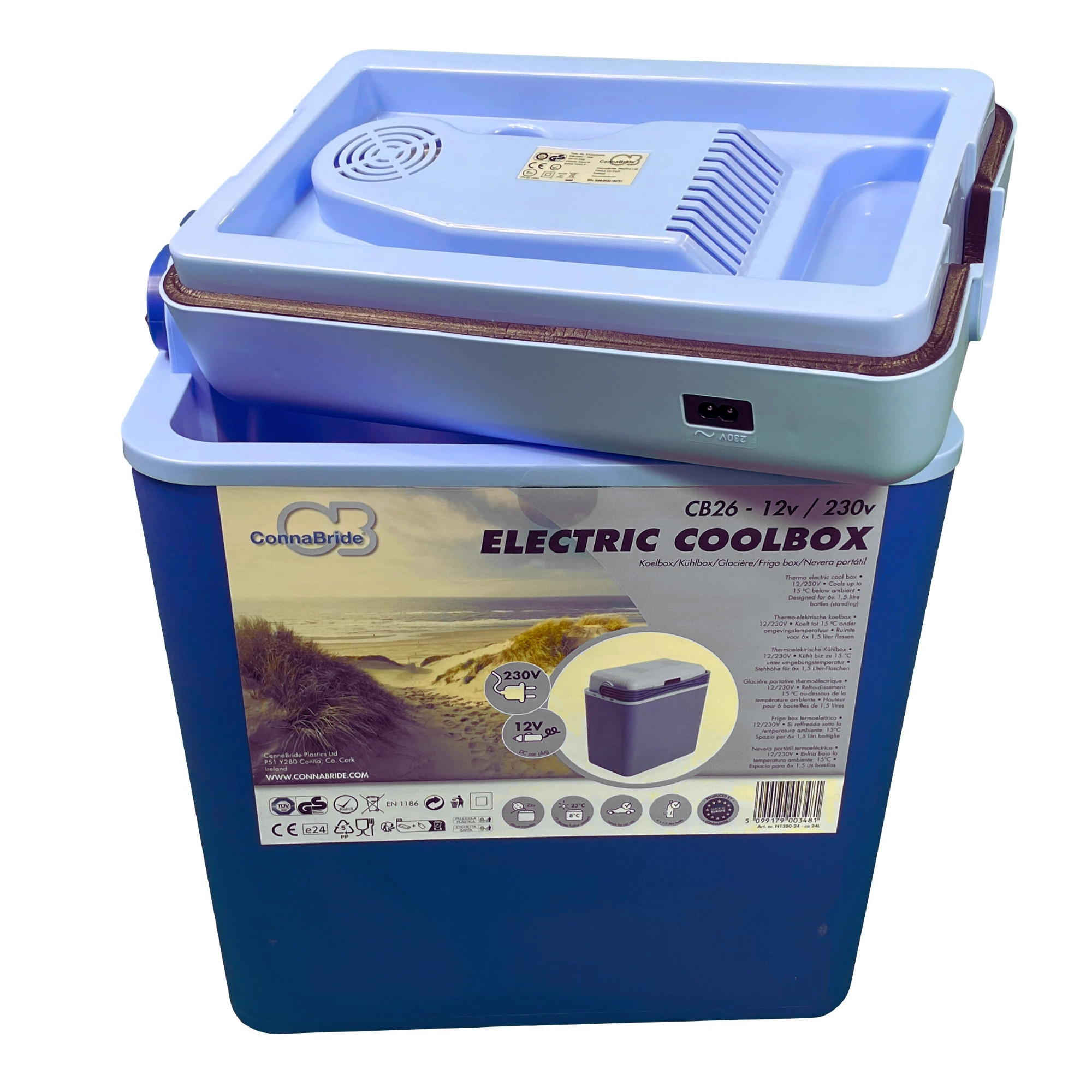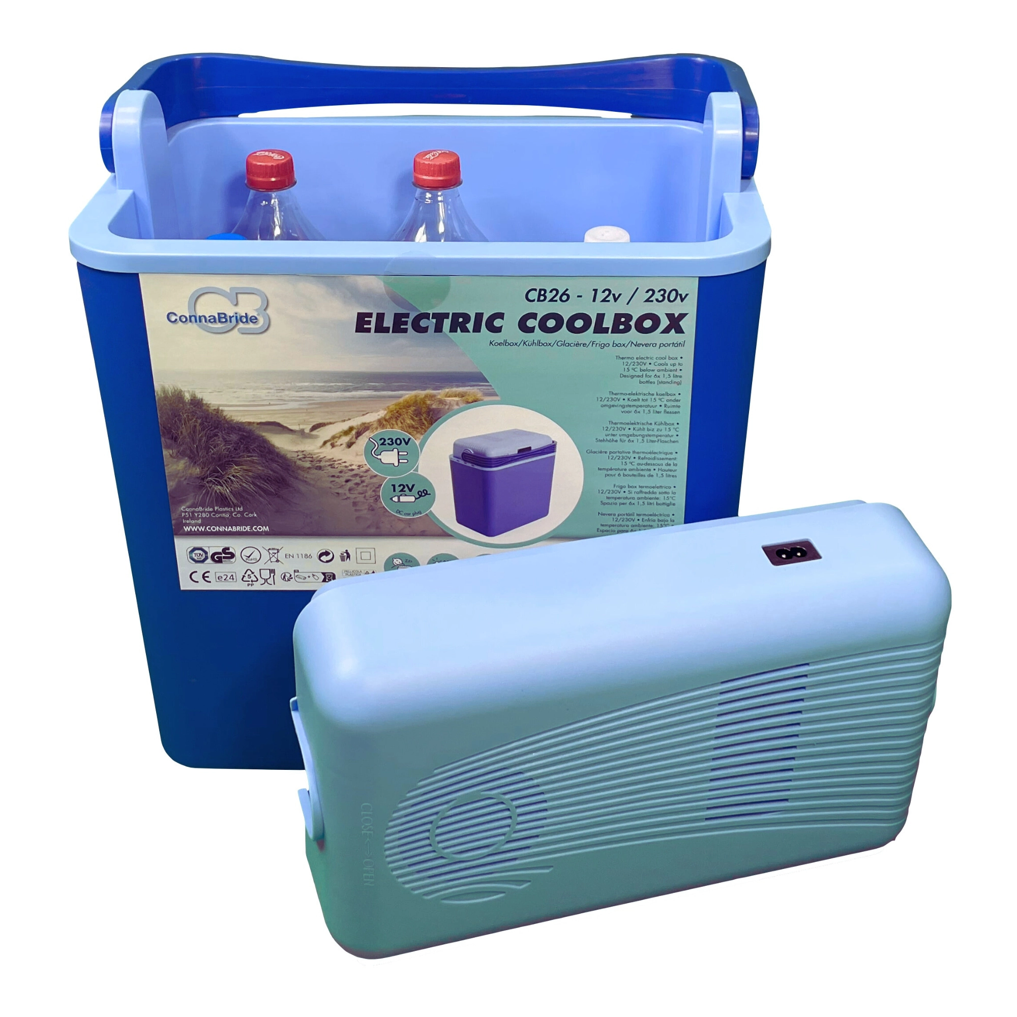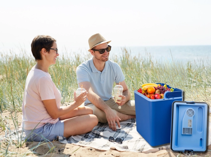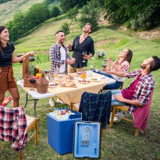 Rafraîchissez en route via la prise 12V de la voiture, puis à l’arrivée basculez sur le 230V. Un transformateur intégré et les deux câbles d’alimentation fournis offrent une flexibilité maximale.