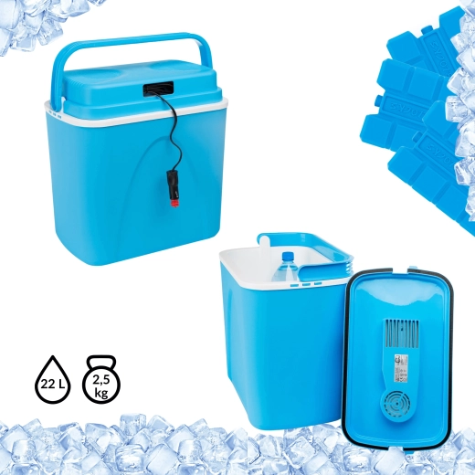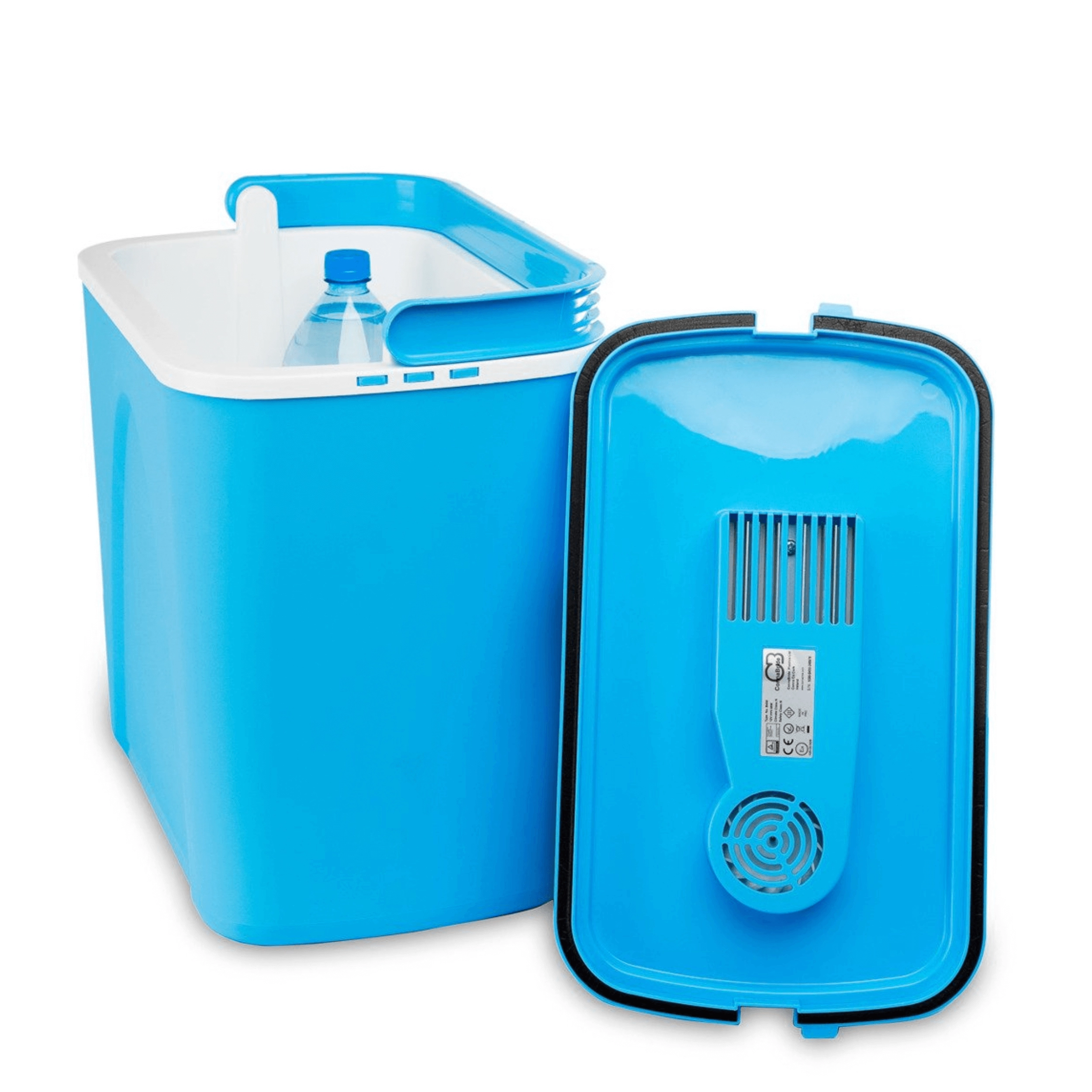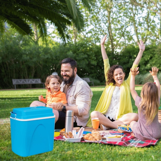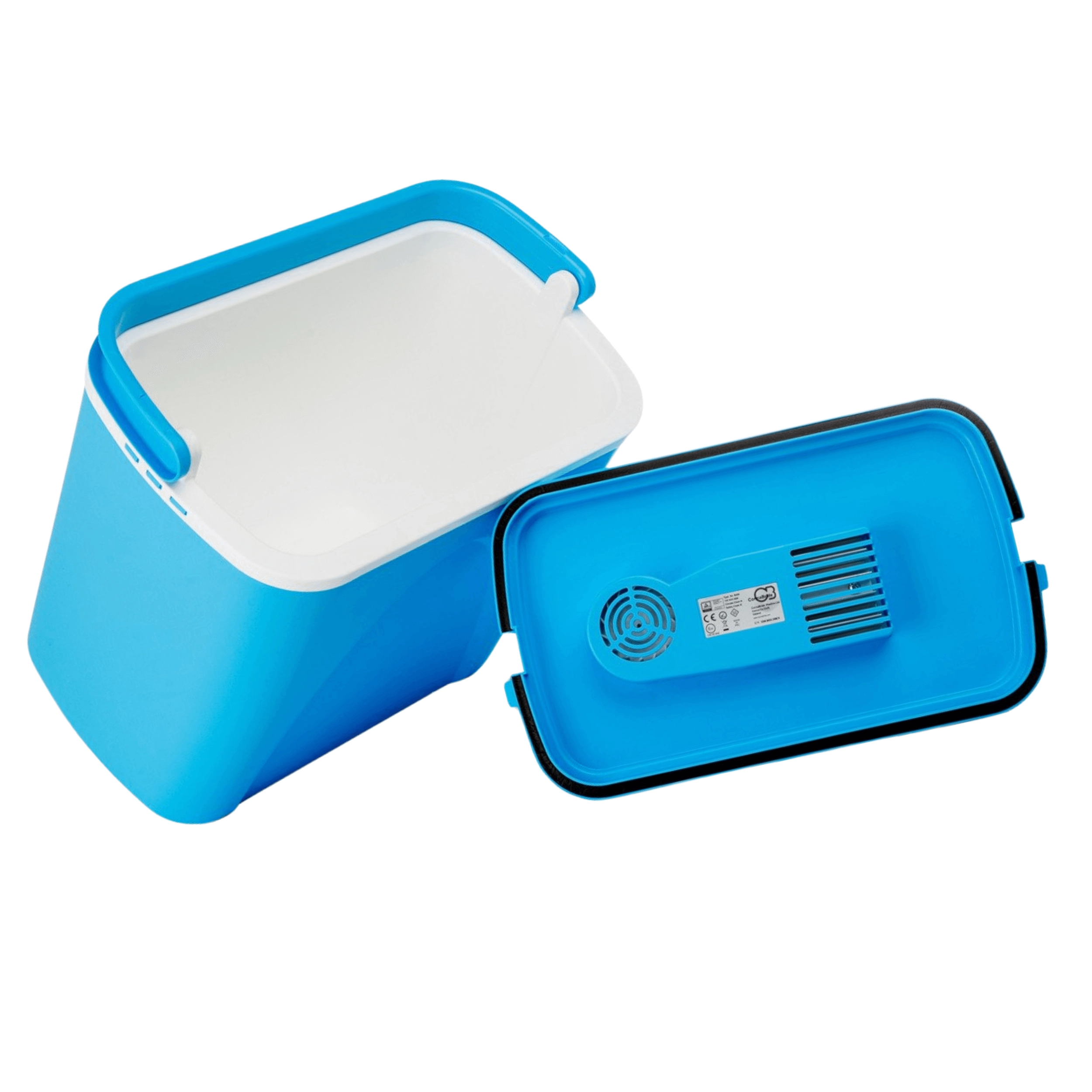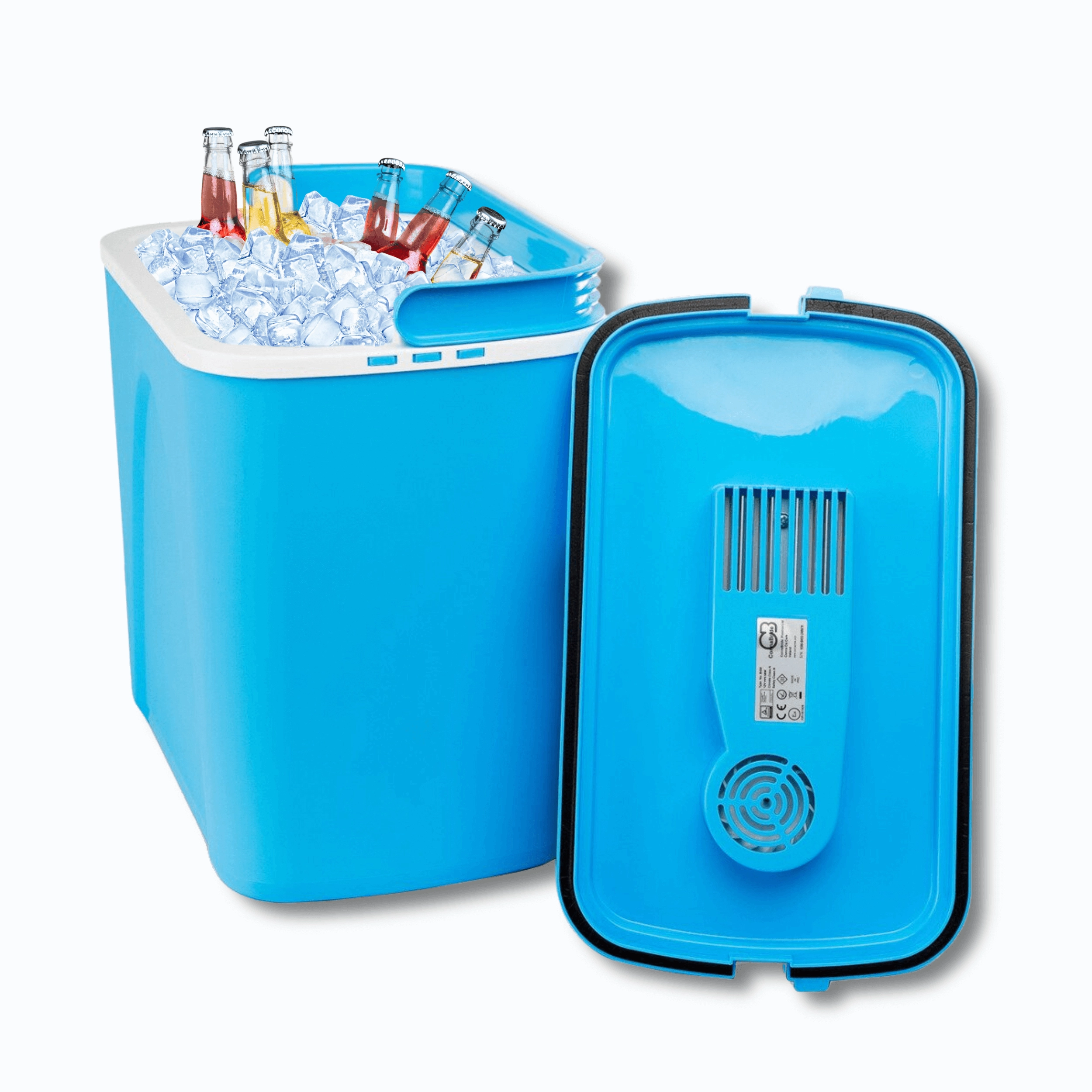 Des dimensions bien pensées permettent de placer des bouteilles de 1,5 l à la verticale et d’organiser clairement en-cas et boissons. La coque légère mais solide en polypropylène est résistante et facile à nettoyer. Son design bleu élégant s’intègre parfaitement à la plage, au camping et dans le coffre de la voiture.