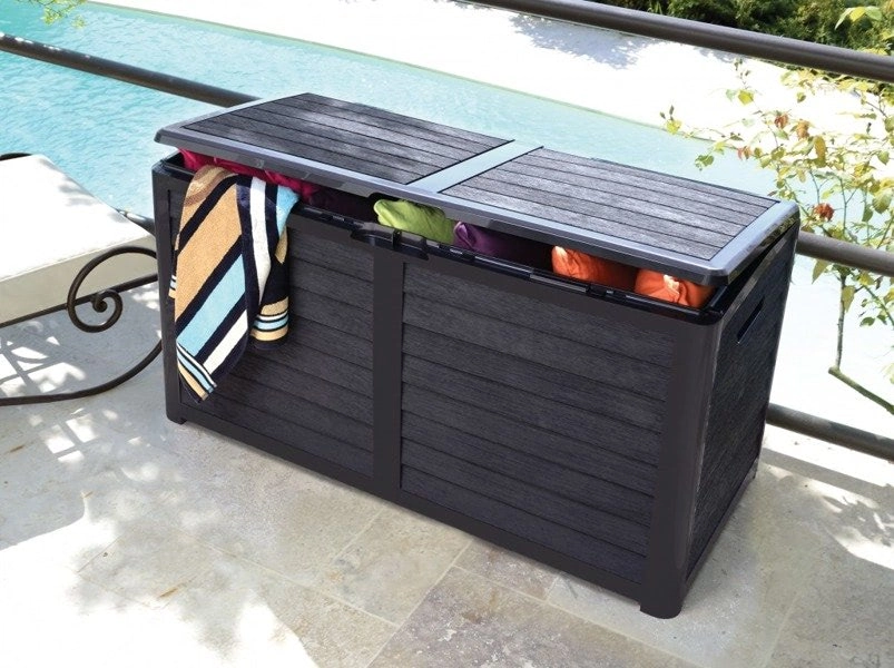La structure en plastique résistant protège le contenu de la pluie et de l’humidité, afin que coussins, jouets et outils restent au sec et propres.