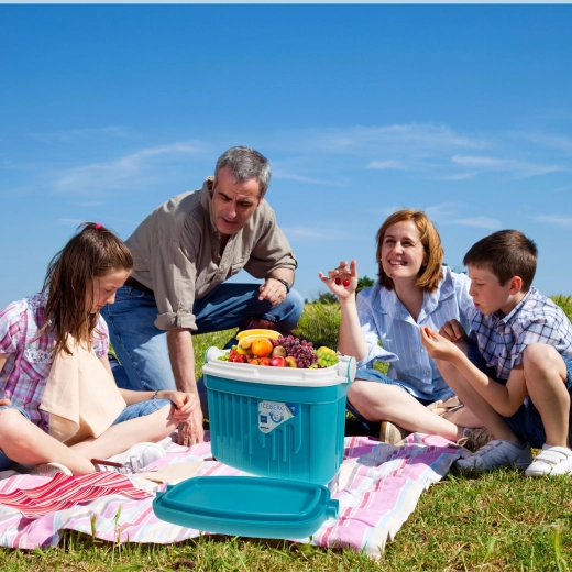 Le corps en plastique robuste avec flancs rainurés pour une meilleure prise en main est complété par une poignée rabattable avec verrouillage du couvercle, empêchant toute ouverture accidentelle pendant le transport. Pour des performances maximales, utilisez-la avec des accumulateurs de froid et des aliments préalablement refroidis.