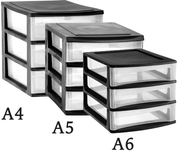 Cette armoire modulaire avec 3 tiroirs étroits A4 est idéale pour ranger notes, fournitures d’écriture, ciseaux, trombones, câbles, clés USB ou CD. La structure empilable permet de placer plusieurs unités l’une sur l’autre ou côte à côte afin de créer un système exactement adapté à vos besoins. Grâce à ses dimensions compactes, elle s’intègre parfaitement sur une étagère comme sur un bureau.