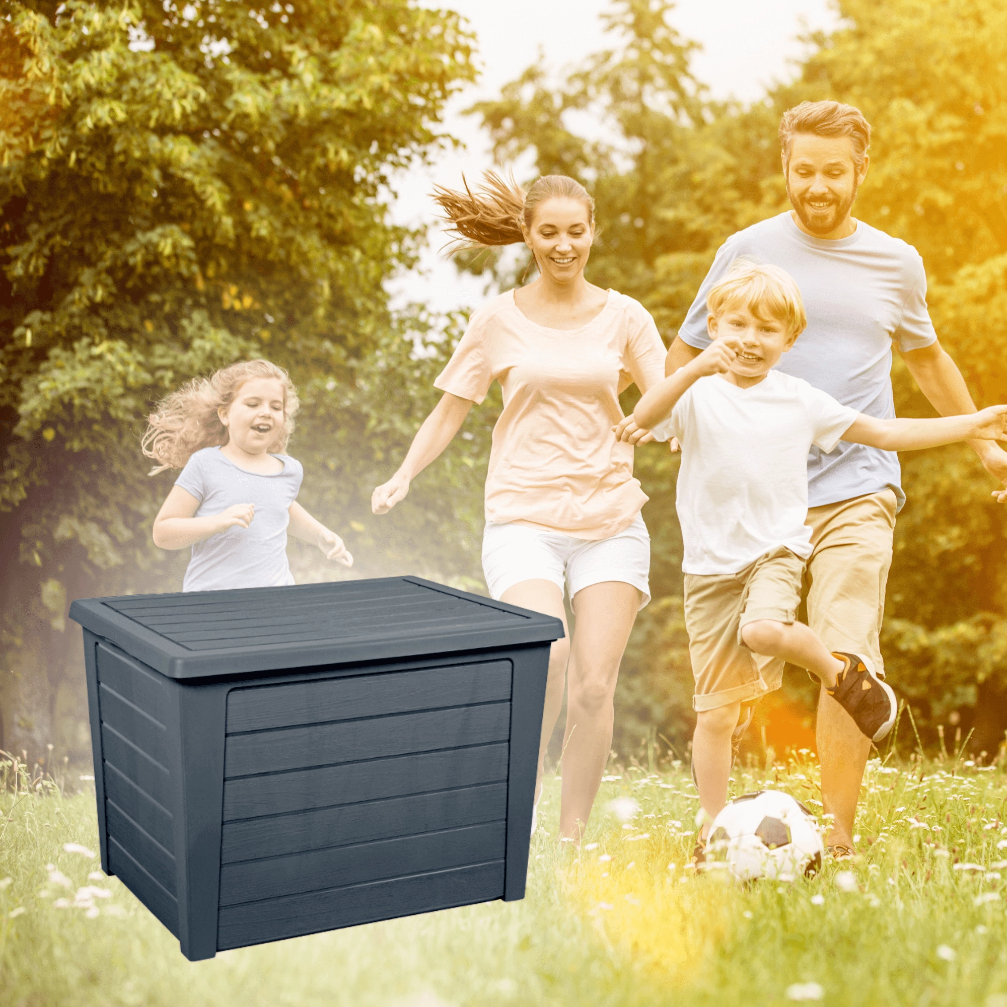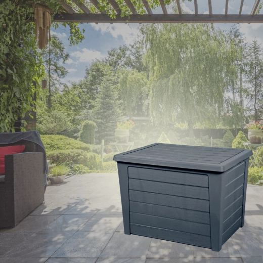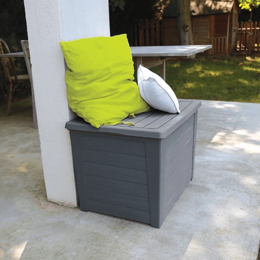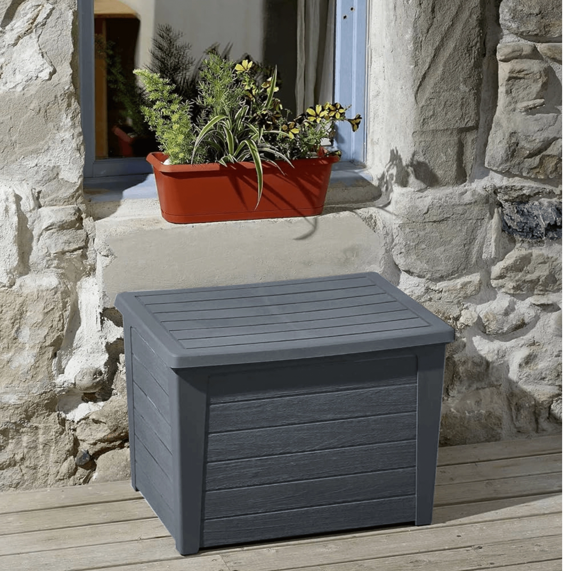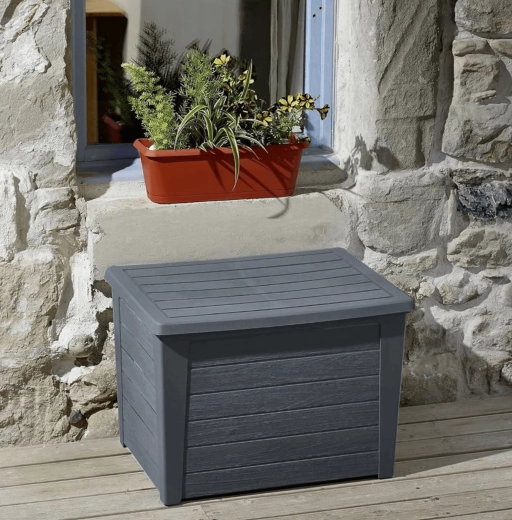 La construction en plastique résistant protège les objets stockés de l’humidité et des saletés – idéale pour les coussins et les outils toute l’année.