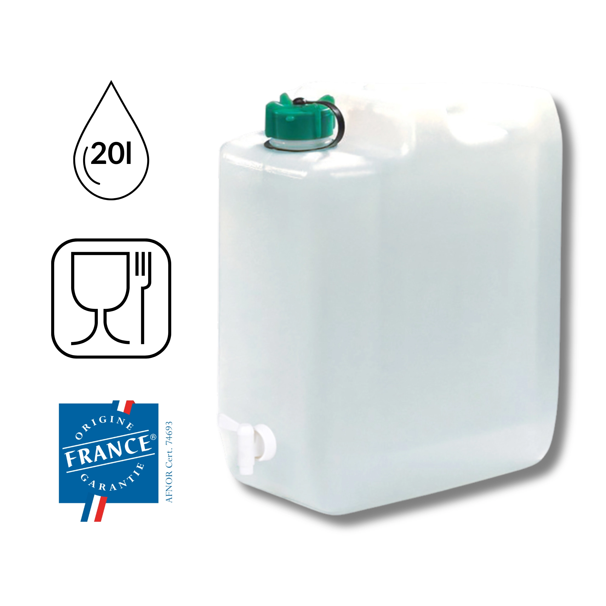 Fabriqué dans un matériau apte au contact alimentaire, il est parfait pour stocker de l’eau potable pour toute la famille.