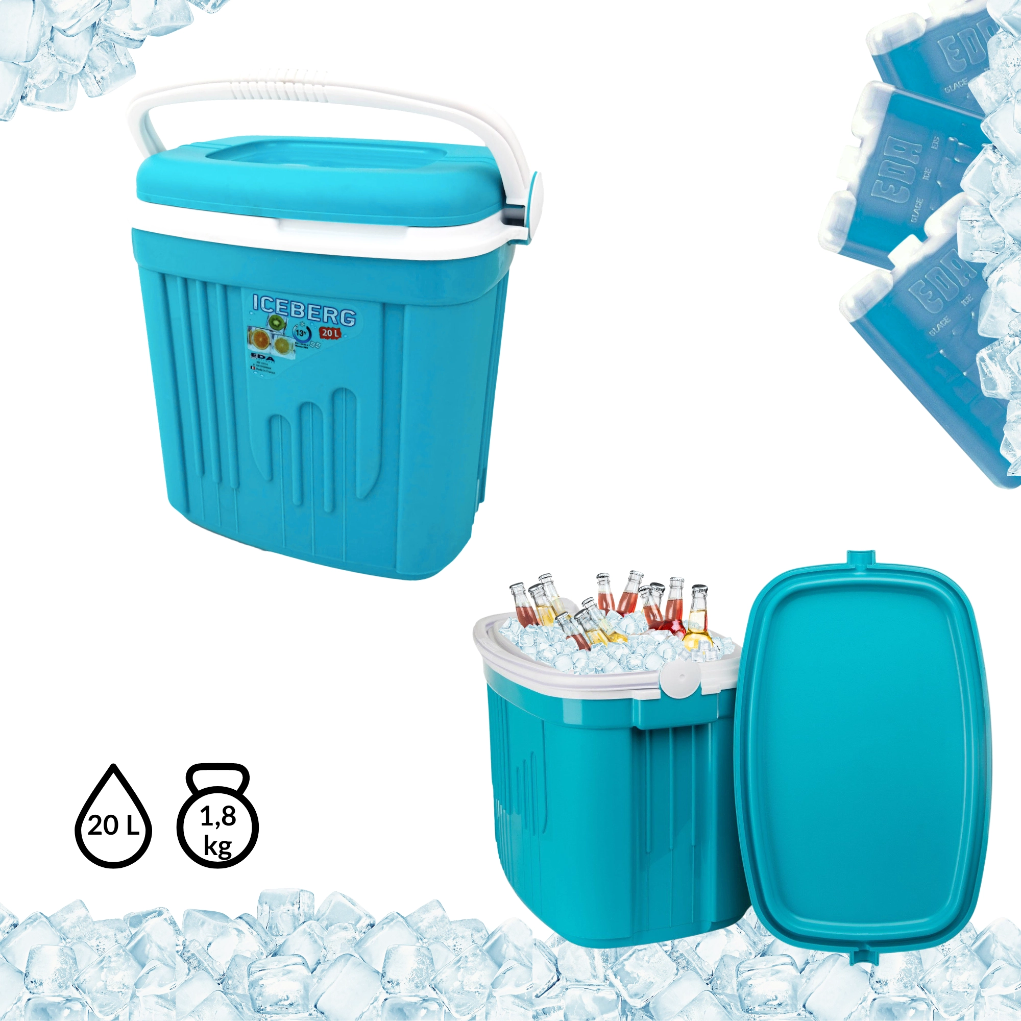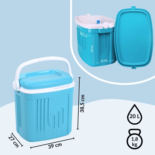 La glacière de voyage compacte et légère KAMAI ICEBERG d’un volume de 20 l garde vos aliments et boissons frais plus longtemps grâce aux accumulateurs de froid. Grâce à sa poignée profilée pratique, elle se transporte facilement et sa couleur turquoise est parfaite pour les pique-niques, la plage et les escapades du week-end.