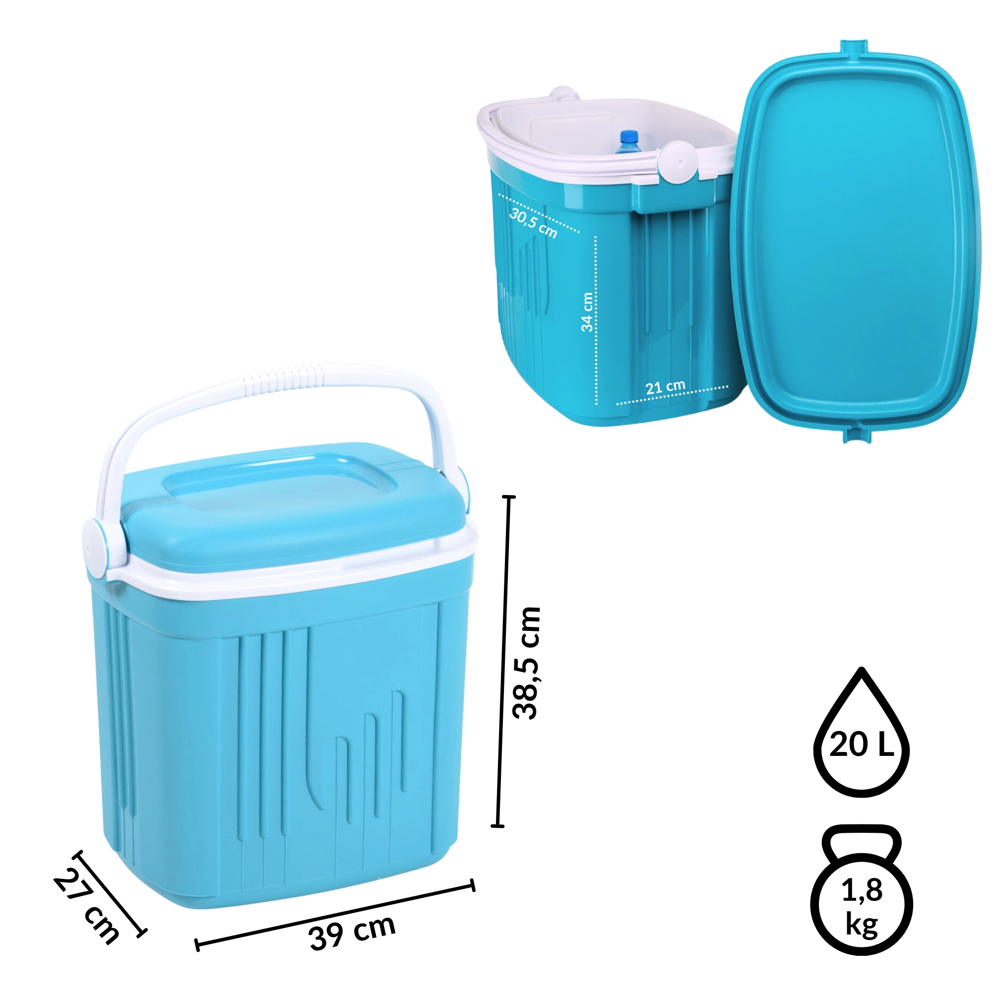 Glacière de voyage 20 l KAMAI ICEBERG, turquoise avec poignée blanche