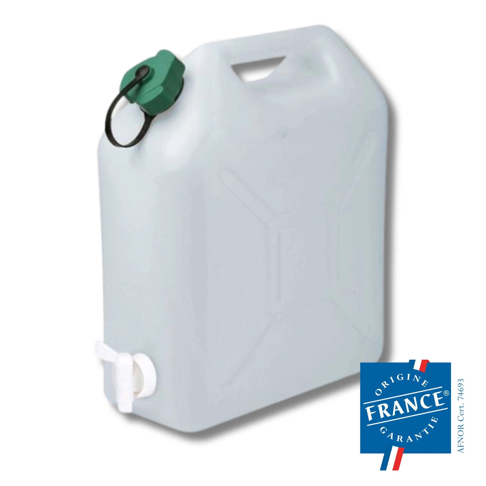 Le bidon KAMAI 10 l avec robinet est un réservoir fiable pour l’eau et les boissons, fabriqué en plastique dur et incassable (polyéthylène). Grâce à son homologation pour le contact alimentaire, il est sûr pour l’eau potable. Ses dimensions compactes facilitent le transport et le rangement à la maison, au jardin et dans la voiture.