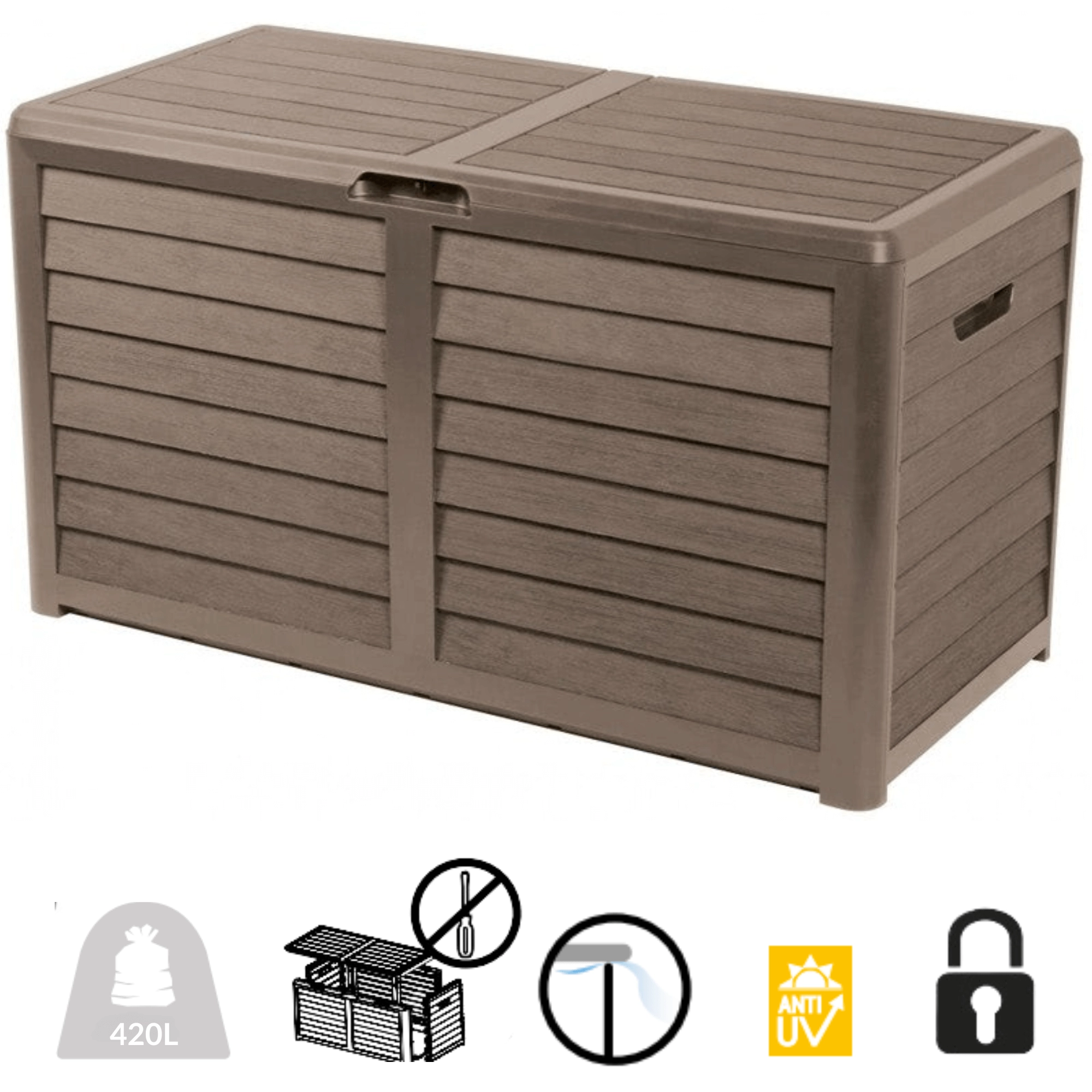 - 420 l d’espace de rangement pour jardin, terrasse et balcon