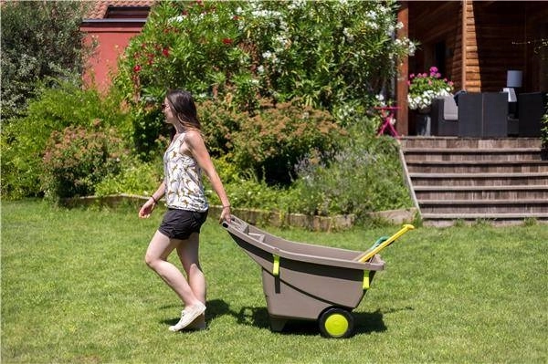 Pratique brouette de jardin d’un volume de 140 l qui facilite les travaux quotidiens au jardin et autour de la maison. Grâce à la roue double, elle se manie facilement même sur des surfaces irrégulières et molles. Sa structure légère et résistante en polypropylène assure une longue durée de vie et la caisse large accueille terre, herbe, feuilles et bois.