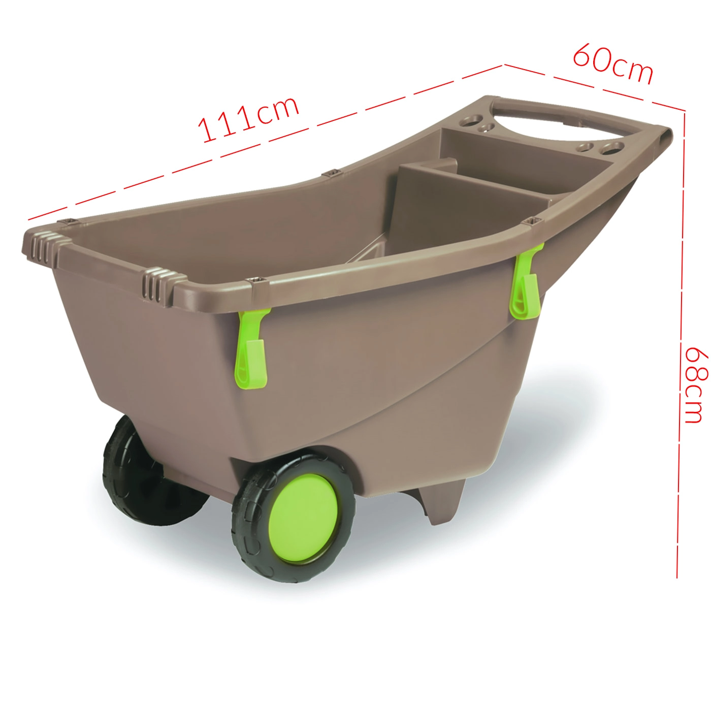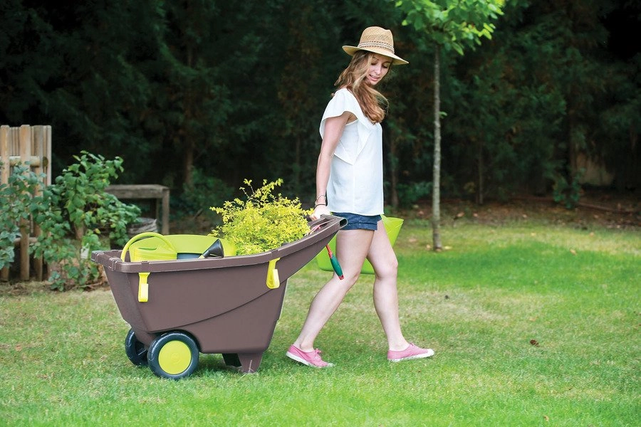 À l’intérieur de la caisse, une pratique étagère intégrée permet de transporter des plants ou de petits outils. Deux œillets latéraux de fixation assurent un transport sécurisé de l’outillage de jardin. Le matériau en polypropylène résistant se nettoie facilement et demande un entretien minimal. La brouette est livrée déjà assemblée, vous pouvez donc commencer à travailler immédiatement.