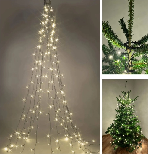 Rideau lumineux suspendu pour sapin de Noël 300 LED – blanc chaud