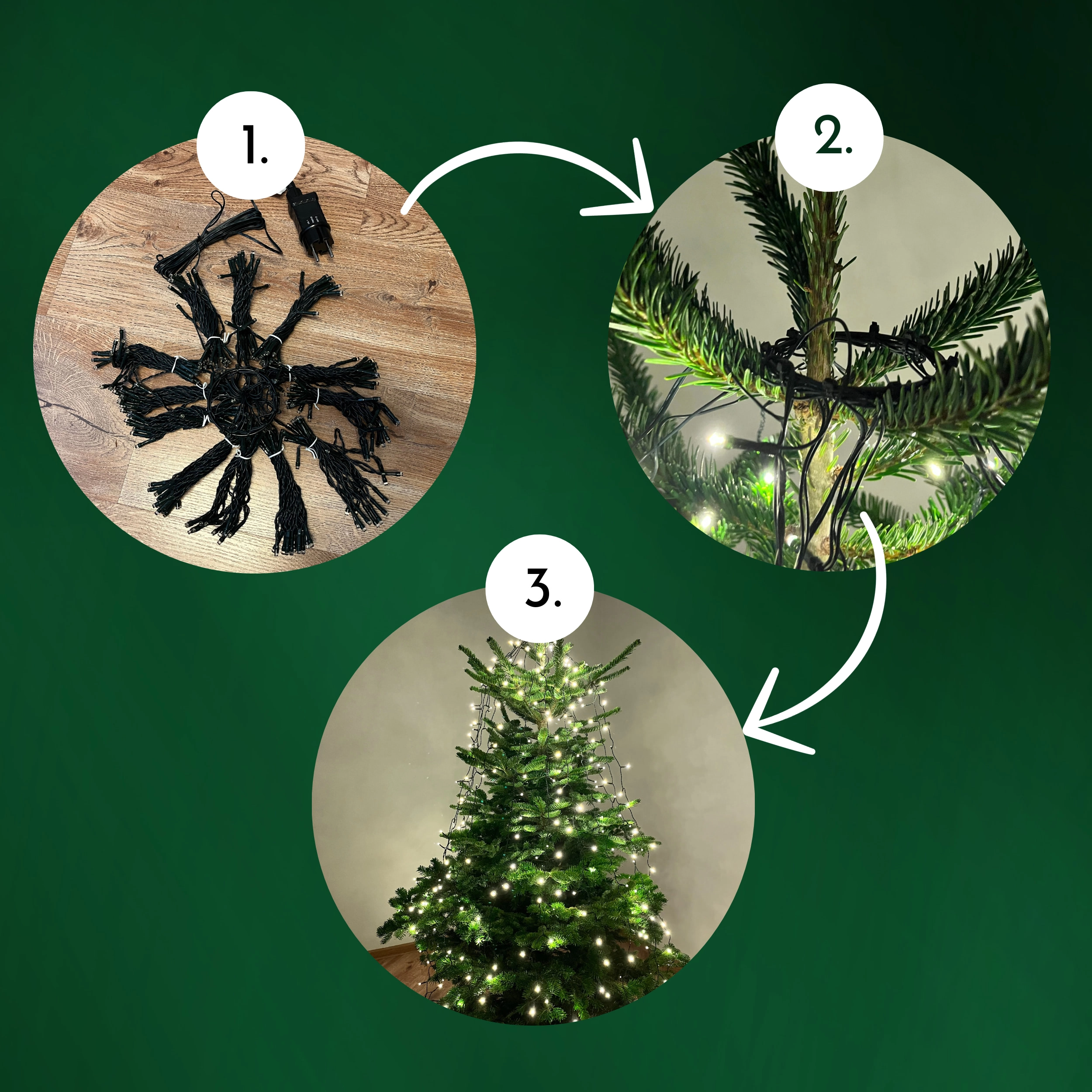 • Montage facile : l’anneau de montage assure une répartition régulière de la lumière sur tout le sapin.