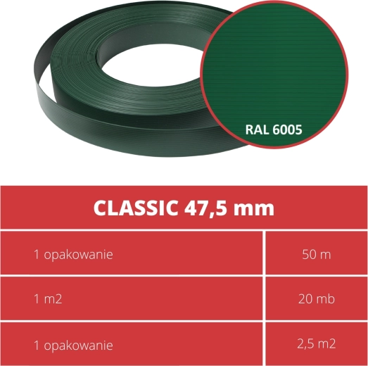 Bande de clôture en polypropylène 50 m, 4,75 cm, vert CLASSIC
