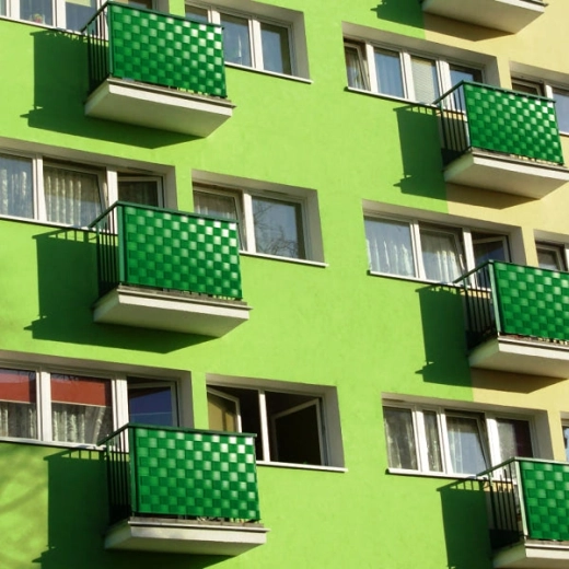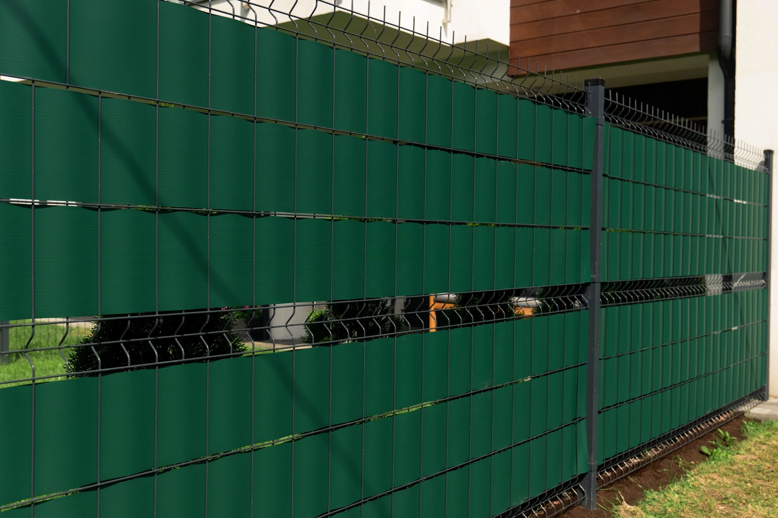 Les lamelles vertes créent un écran continu qui empêche les regards indiscrets et réduit les courants d’air. Idéal pour les jardins, terrasses et balcons d’appartement.