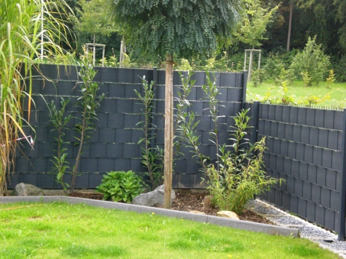 La bande nervurée graphite remplit les mailles de la clôture à panneaux et crée une barrière compacte contre les regards et le vent. Idéale pour jardins, terrasses et balcons.