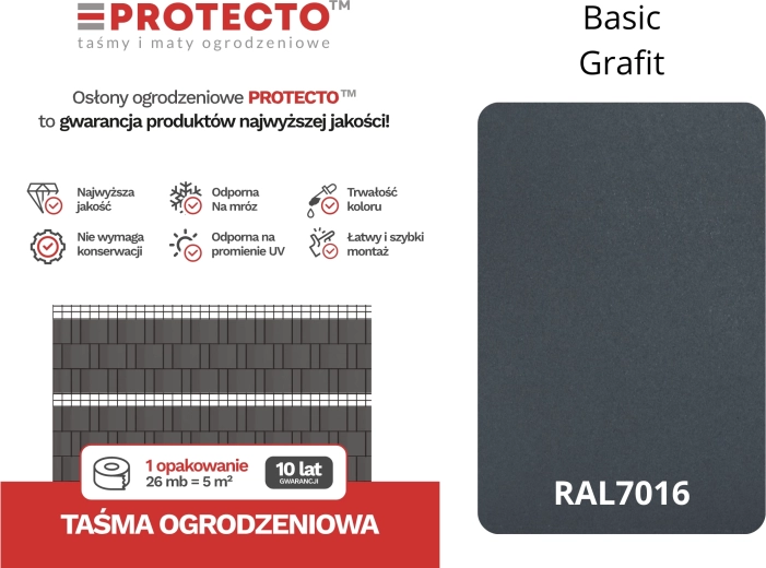 Assurez calme et intimité dans votre jardin avec la bande de clôture PROTECTO en polypropylène de qualité. Elle offre un occultant 100 %, une grande résistance aux UV et au gel et une longue durée de vie confirmée par une garantie de 10 ans. Facile à installer sur clôtures à panneaux 2D/3D, garde-corps de balcon ou travées de clôture, elle protège efficacement du vent, de la poussière et du bruit.