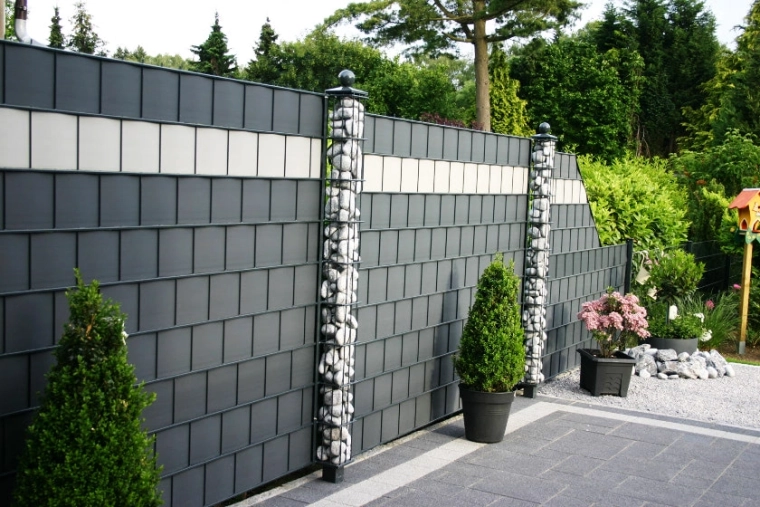Bande de clôture de haute qualité en polypropylène (PP) pour un respect total de la vie privée et une protection contre le vent. Grâce à la 3S Technology, elle est stabilisée UV, résistante au gel et conserve sa couleur RAL 7040 – gris clair. Installation facile sans outils spéciaux, possibilité de pose sans clips. Garantie 10 ans.