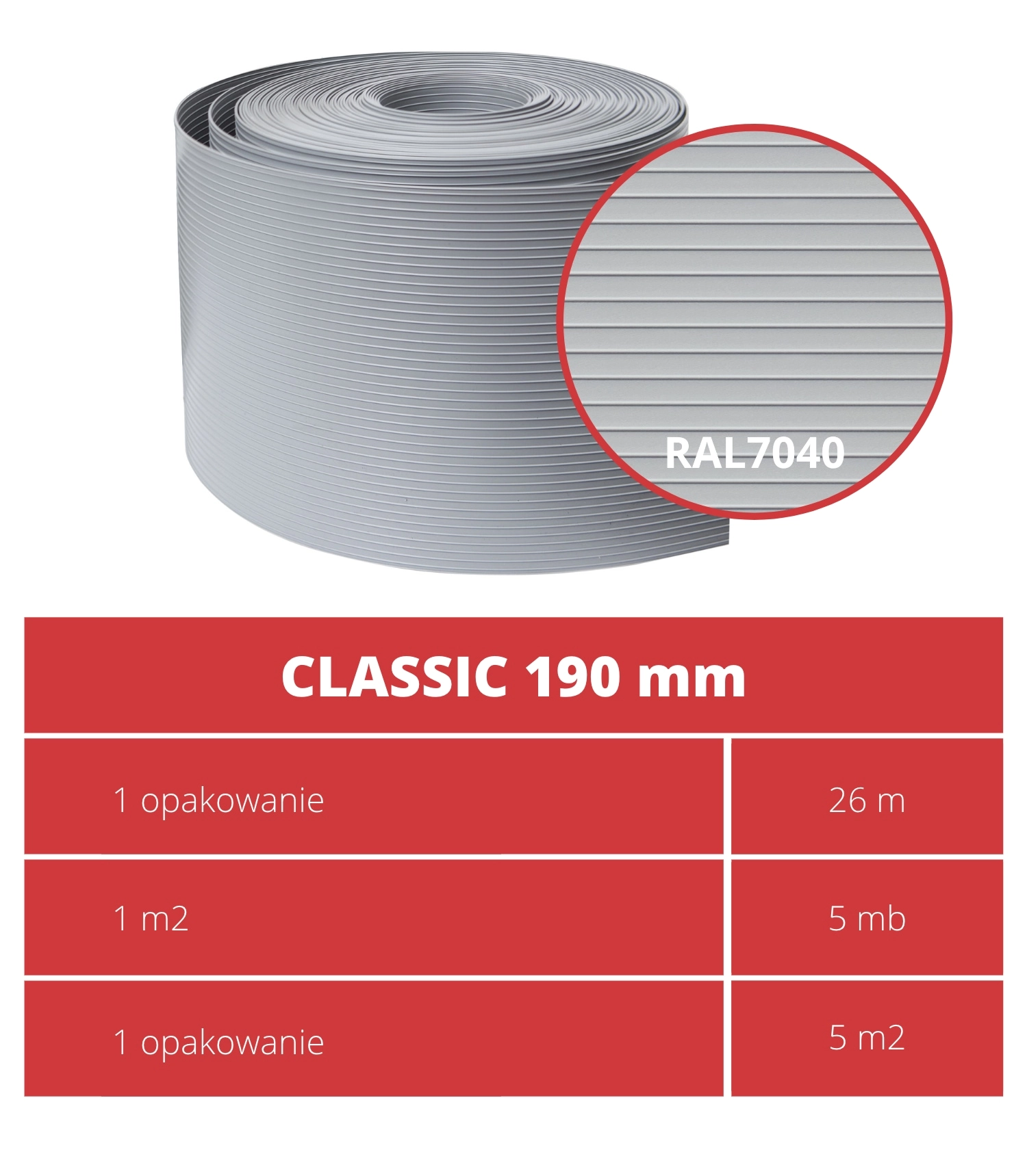 - Longue durée de vie – 10 ans de garantie, couleur stable RAL 7040.