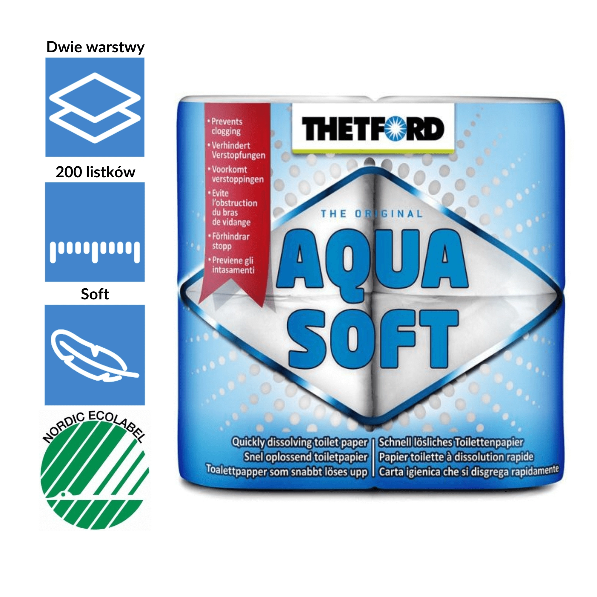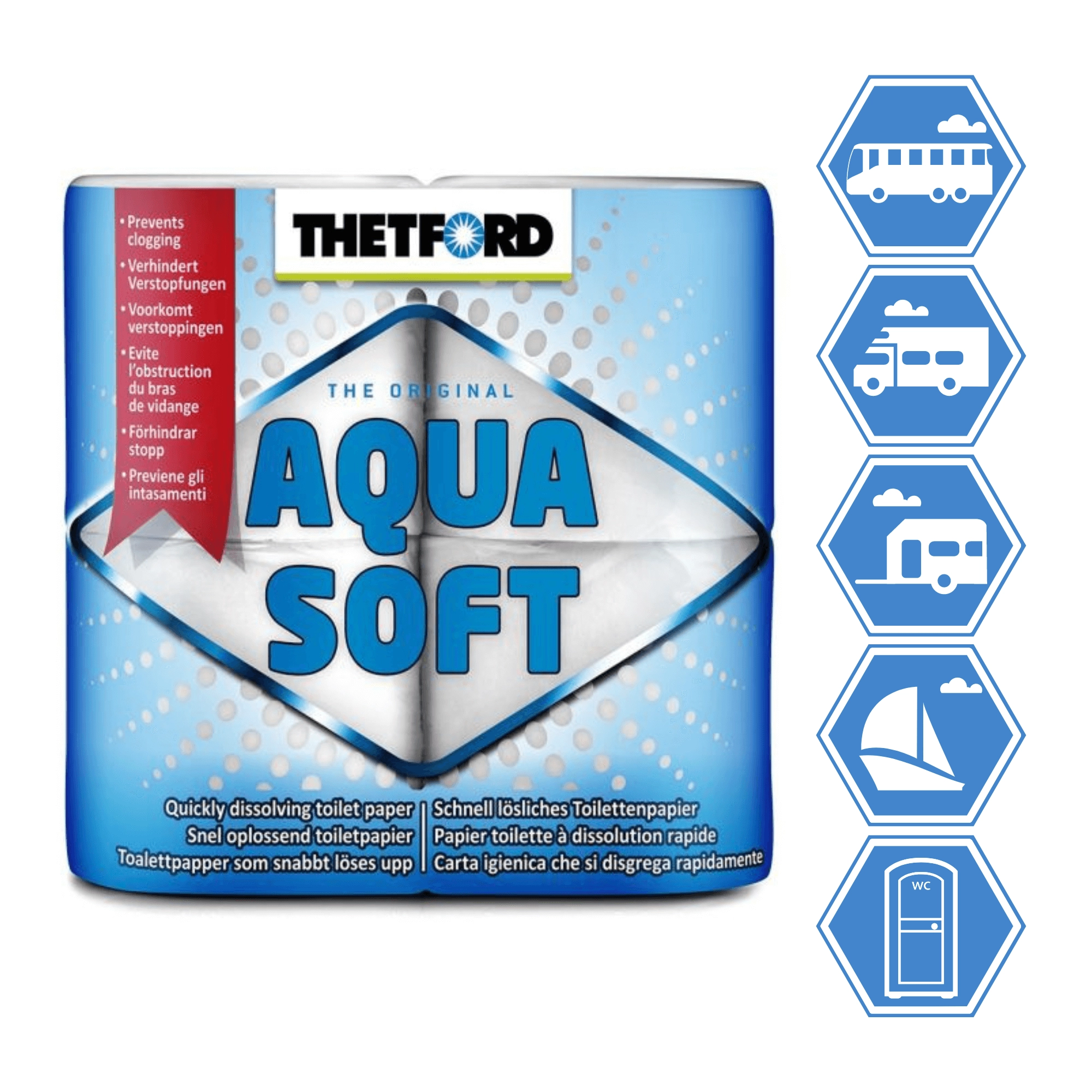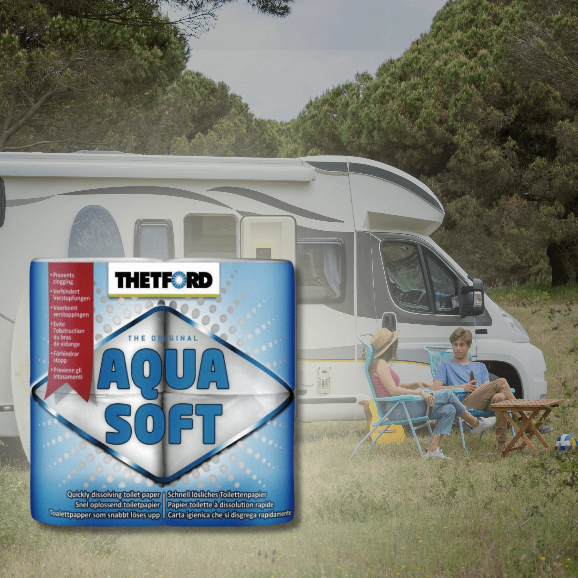 Profitez du confort de la maison même en déplacement. Le papier toilette THETFORD Aqua Soft a été spécialement développé pour les toilettes chimiques portatives et intégrées dans les camping-cars, caravanes ou bateaux. Il est très doux au toucher et se décompose rapidement dans le réservoir des eaux usées, de sorte que la toilette ne s’encrasse pas et l’entretien est extrêmement simple.