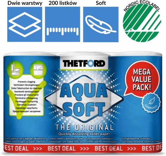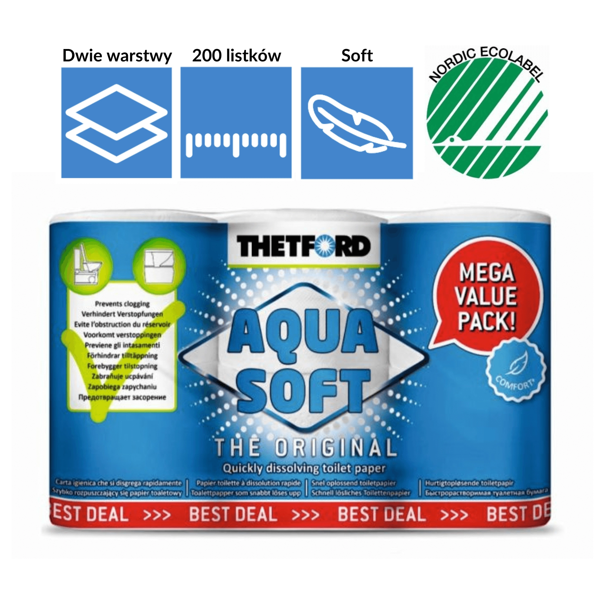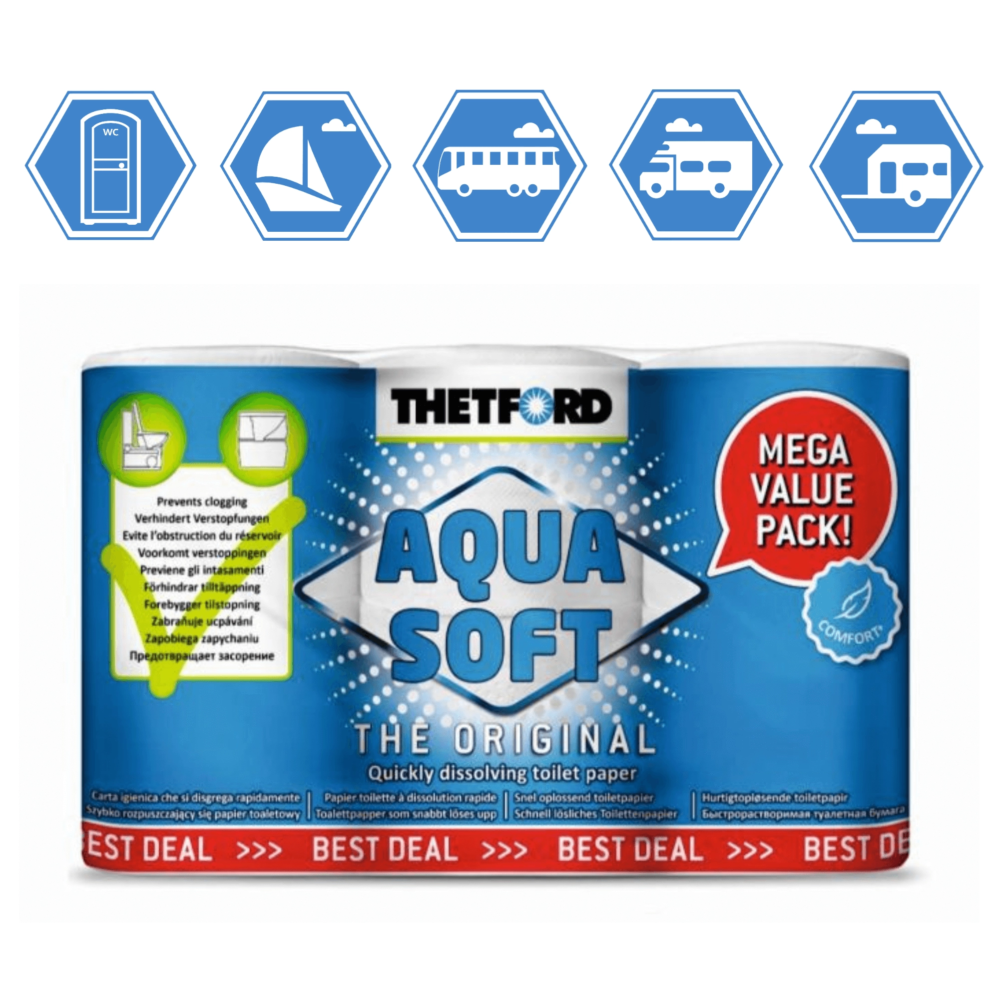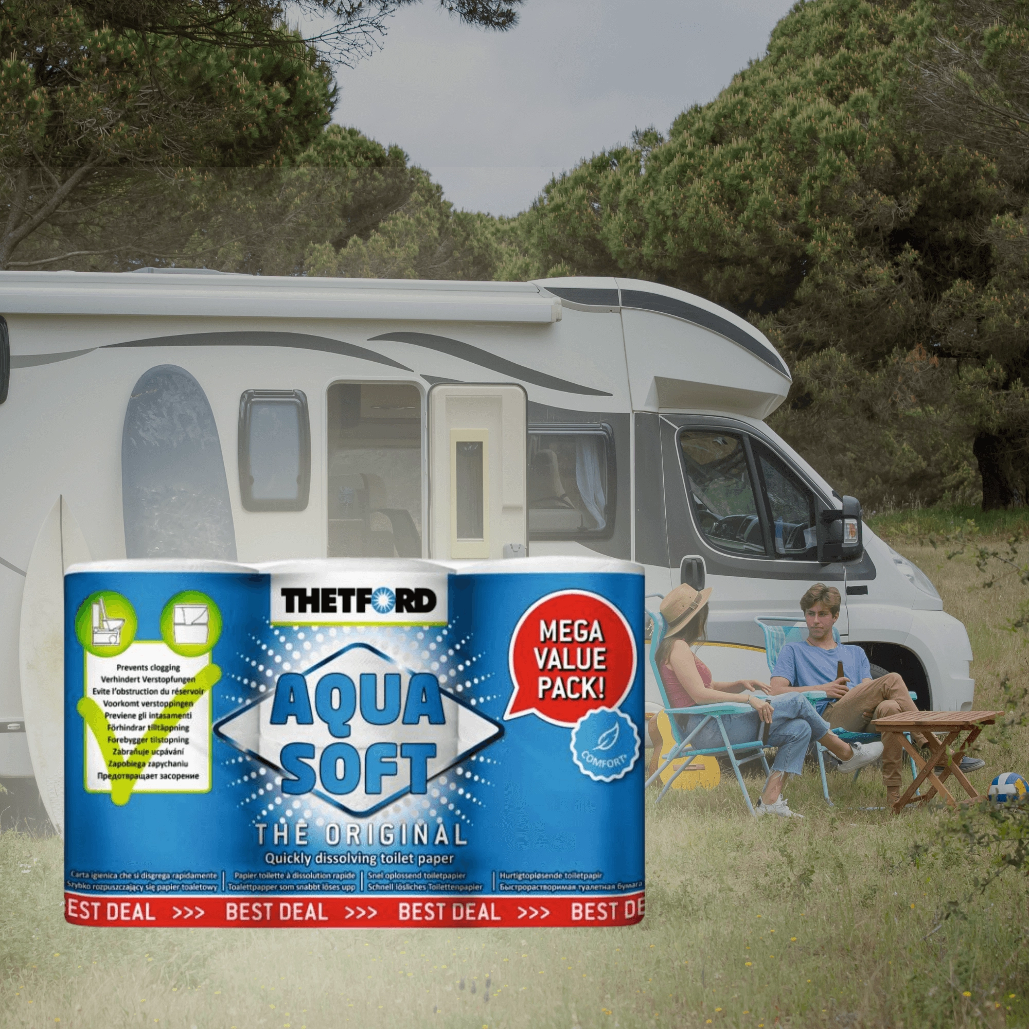 Profitez de vos voyages en toute sérénité avec le papier toilette THETFORD Aqua Soft, spécialement développé pour les WC chimiques et portatifs dans les caravanes, camping-cars, bateaux ou chalets. Grâce à sa dissolution rapide, il empêche la formation de dépôts, évite les bouchons et simplifie considérablement l’entretien et la vidange du réservoir.