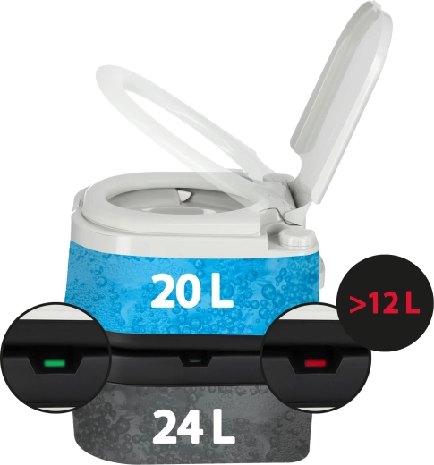 Profitez de la liberté en voyage avec la toilette NILS Camp, qui allie grande capacité, utilisation aisée et conception hygiénique. Deux réservoirs séparés (20 l pour l’eau propre et 24 l pour les eaux usées) permettent une utilisation sereine pendant plusieurs jours, tandis que l’indicateur de remplissage vous avertit à temps de la nécessité de vidanger.