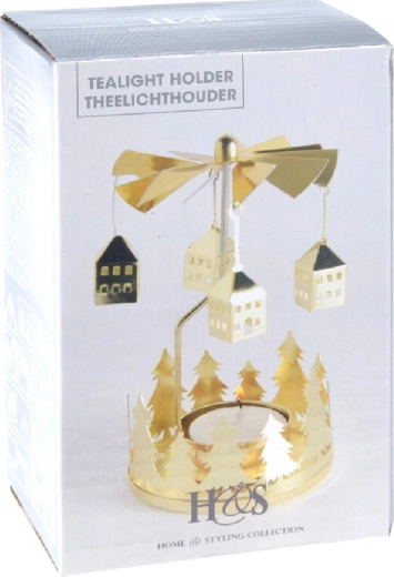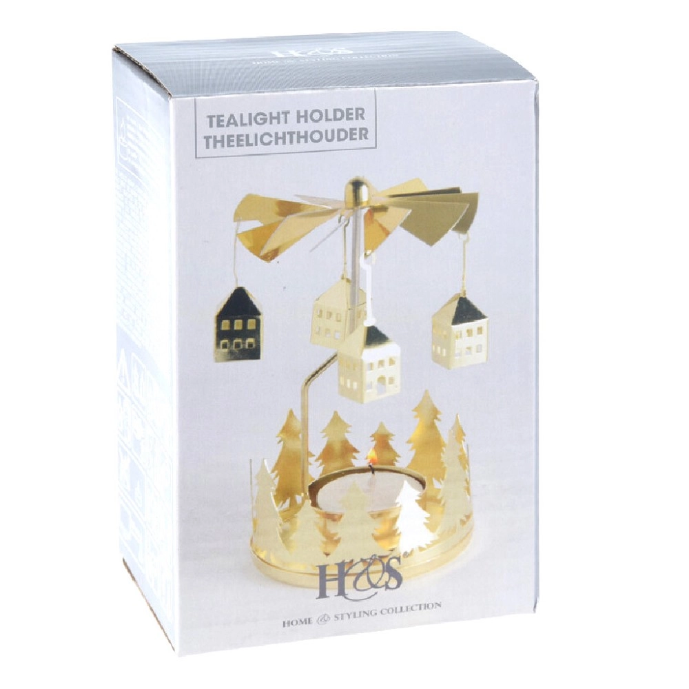 Embelleissez votre intérieur avec un carrousel rotatif enchanteur qui se met en mouvement grâce à la chaleur d’une bougie chauffe-plat et illumine la pièce d’un jeu de lumières et d’ombres. La finition dorée apporte de l’élégance et s’harmonise parfaitement avec un intérieur moderne comme traditionnel.