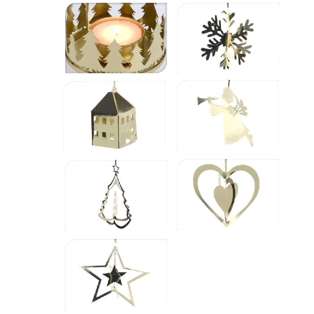 - Petites maisons, flocons, petits sapins, anges, étoiles, petits cœurs (un motif aléatoire est livré)